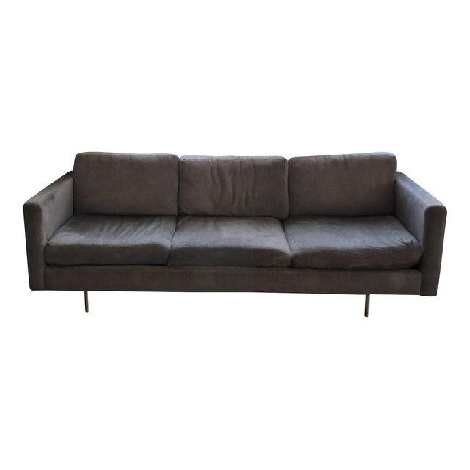 Seller's Notes:This Milo Baughman sofa is designed for timeless modern mid century look that is stylish, durable, and comfortable. The fabric is a blue and tan weave that is modern and subtle.