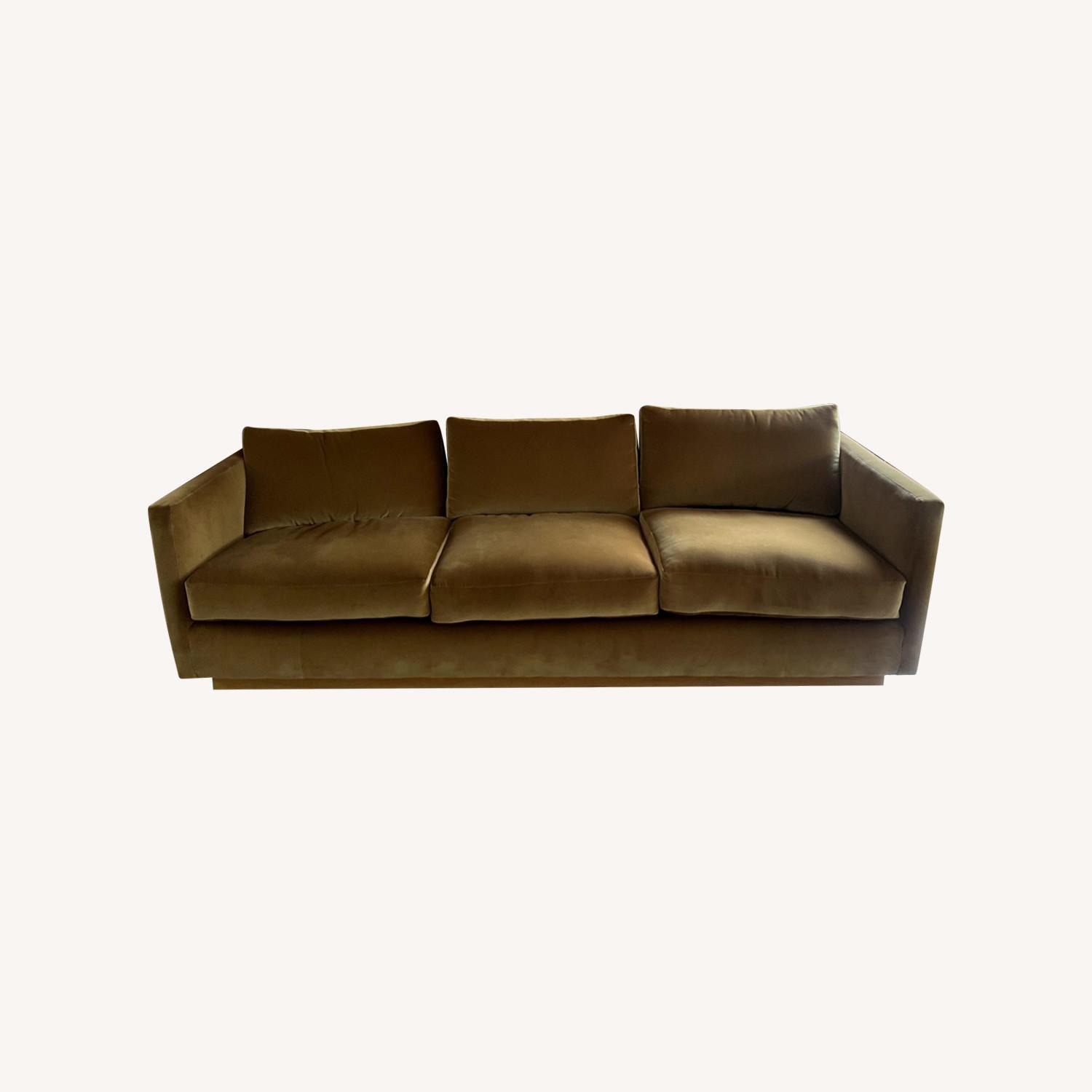 Seller's Notes:Newly upholstered Milo Baughman for Thayer Coggin sofa, part of a set. Upholstered in brown velvet from Romo in NYC. Have not been used since reupholster, just did not suit the space. Has original tags.