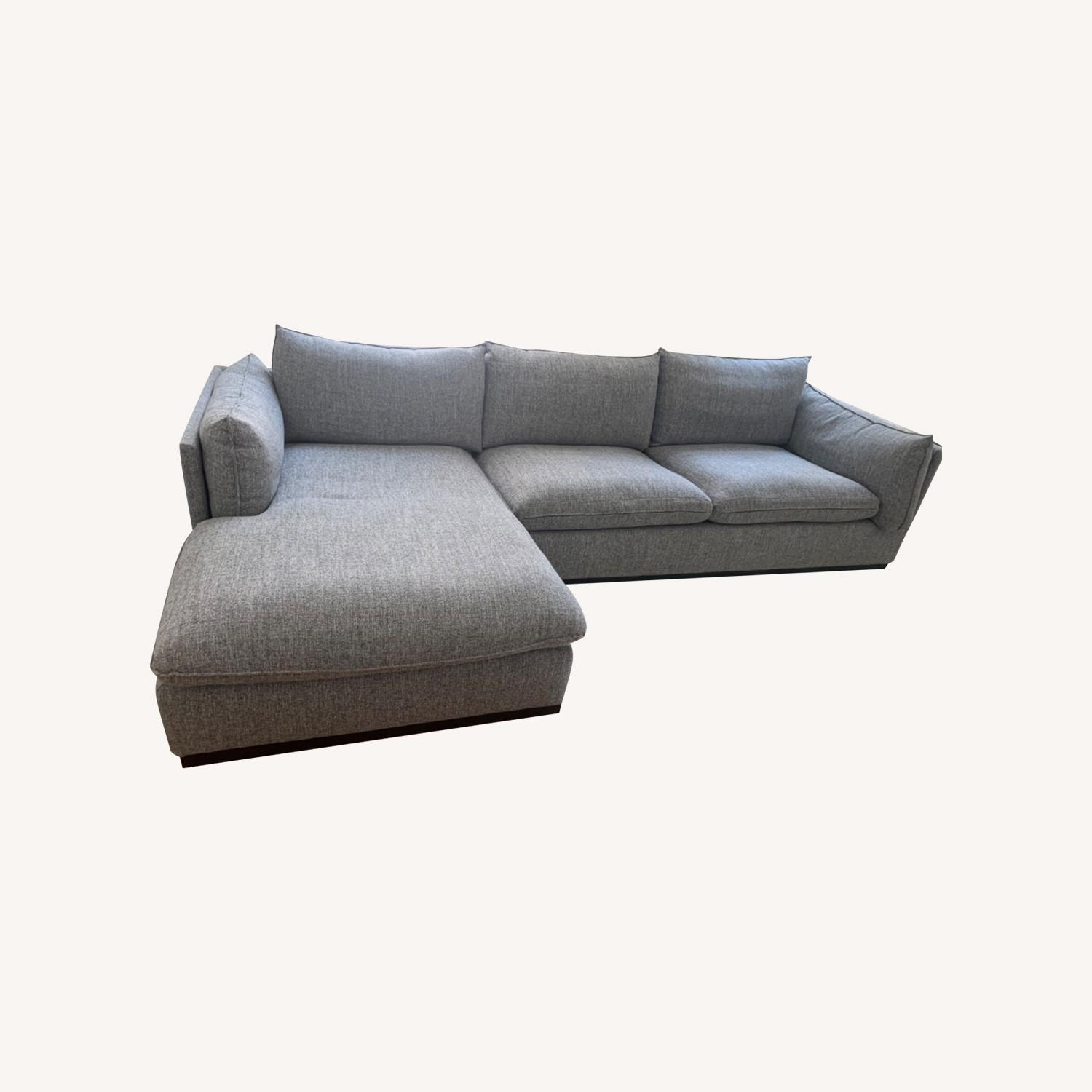 Seller's Notes:Basically brand new, just too big for our space. Breaks apart into two pieces. No rips, stains, tears, etc. can easily fit two people to sleep on overnight. Fabric is greyish-blue 124"W x 67"D x 34"H Retails for $1899 + delivery.
