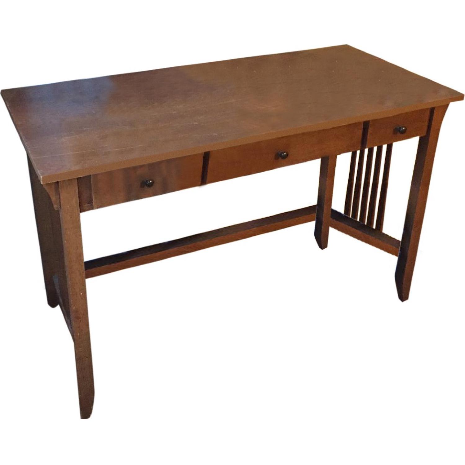 Seller's Notes:Great desk, changed it over to use as a vanity after I graduated. Just needs some sanding or paint! Or distress! Great DYI project! Three drawers work great Would include wicker/wrought iron chair