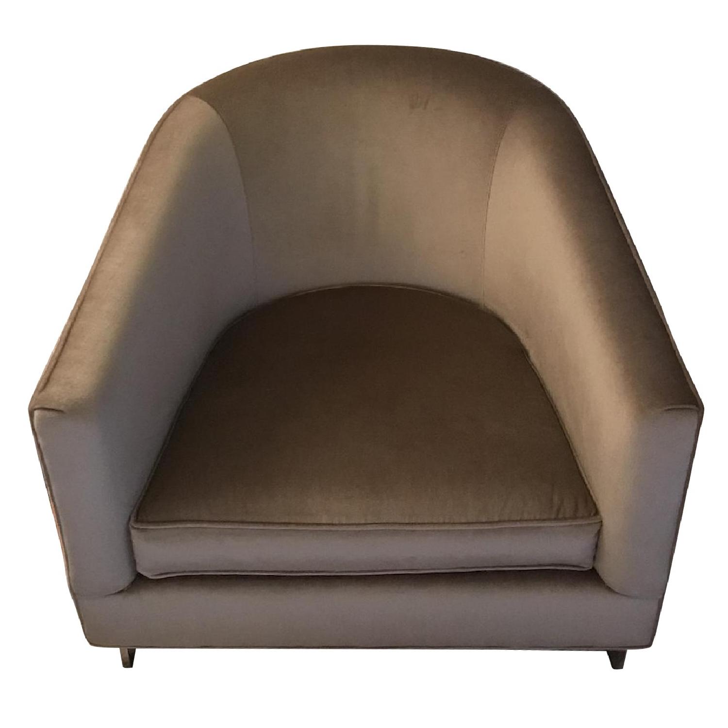 Seller's Notes:A modern design standout: our comfortably upholstered barrel-back chair suspended in a sleek metal frame. Adds a welcome curve to a room. Looks great in pairs. Featured here in Rowland Silver Velvet fabric with frame finished in gleaming polished stainless steel. Dims 30"w x 32"d x 29"h Seat Dims 23w 23d 18h Arm Height 24 Frame Height 29