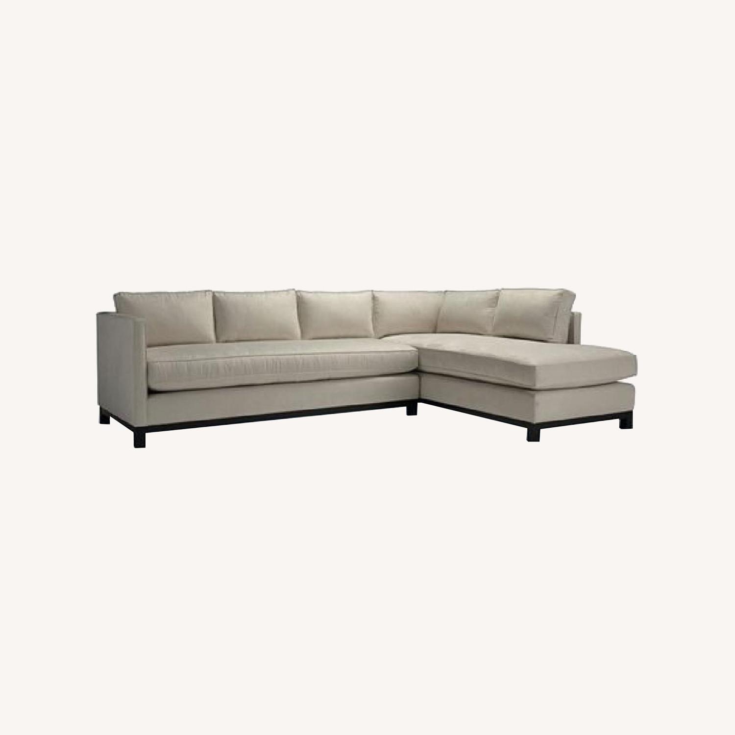 Seller's Notes:Beautiful Mitchell Gold Clifton Sectional for sale in soft creme suede color. Amazing condition.- just cleaned and looks new. Dimensions: 114 in. width x 79 in. depth x 34 in. height Retail for $5,000