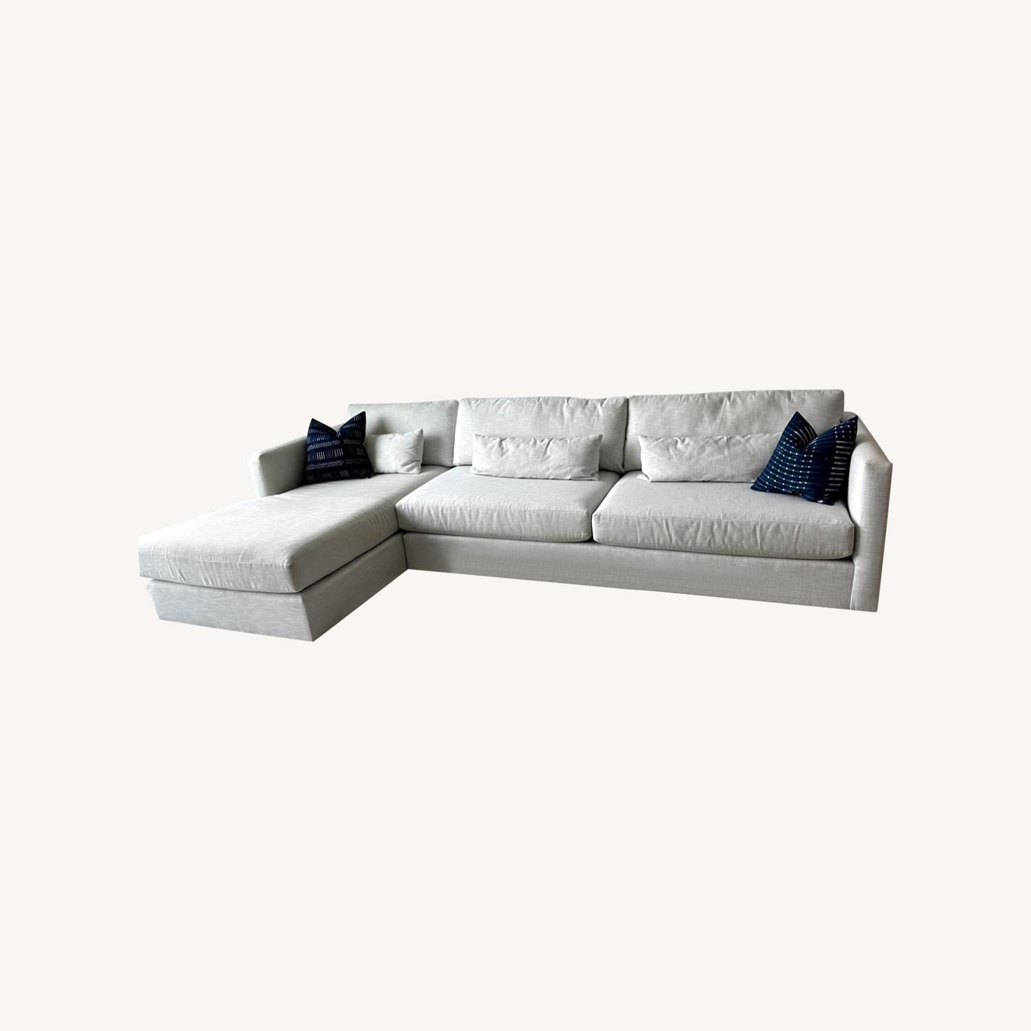Seller's Notes:Mitchell Gold Haywood sectional with chaise in excellent condition! Super comfortable, sleek, attractive and timeless design. No kids, no pets, no smoking, and not even any eating happened on the couch! Not even a single spill believe it or not. Purchased for more than $8,000 four years ago and only used by two neat freaks since then. Unfortunately won't fit in our next place we are moving.