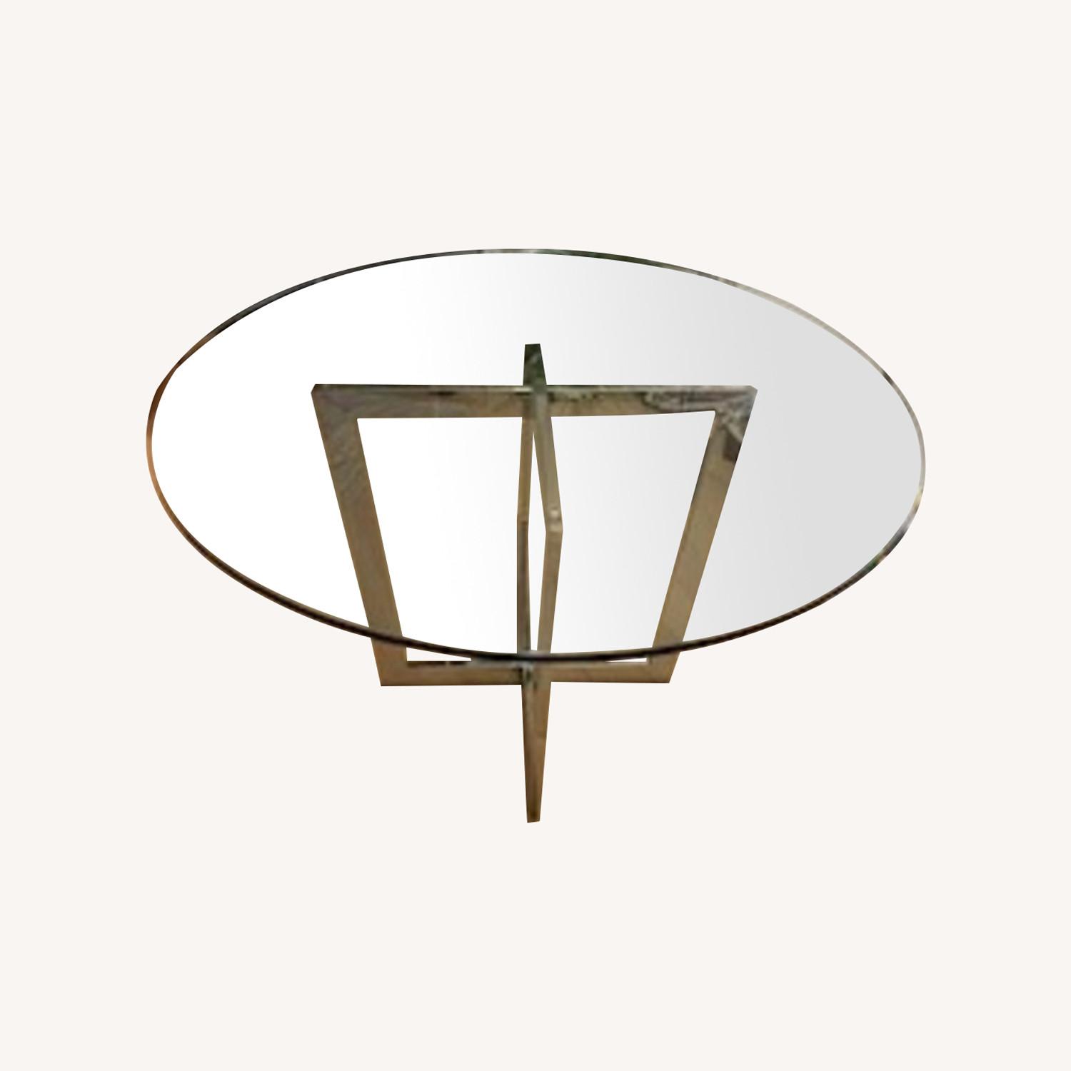 Seller's Notes:Mitchell Gold + Bob Williams Glass Topped Dining Table on Chrome metal base from Townsend collection. Sleek, modern design. Appears like new.