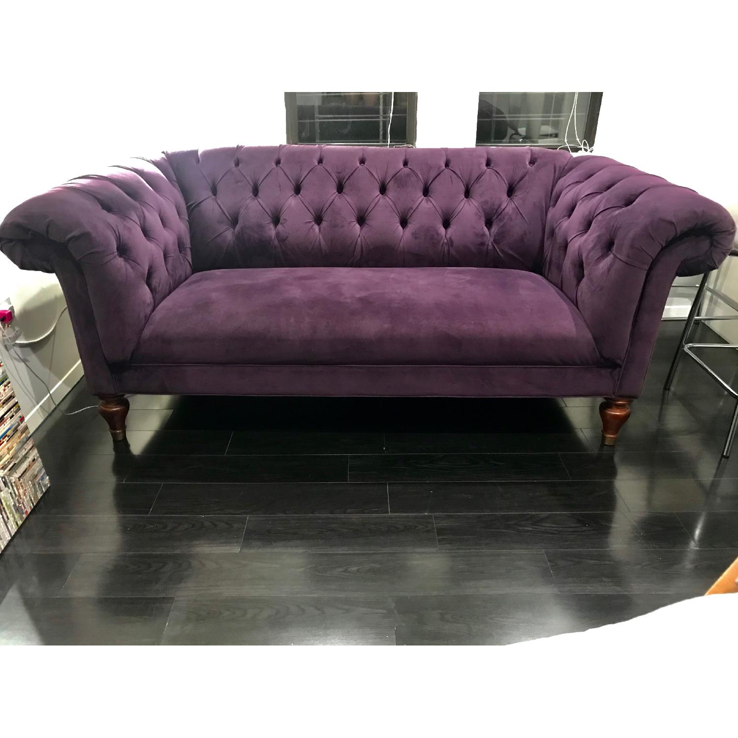 Seller's Notes:Amazing condition Mitchell Gold + Bob Williams Chesterfield sofa. Deep purple velvet. One of a kind. Coming from a smoke-free, pet-free home, you won't see evidence of wear other than a minor blemish on a leg. Size: W80” x H32” x D38” This version of the MGBW Chester isn't available anymore but was purchased from ABC Carpet & Home. https://www.mgbwhome.com/addison-no-nail-sofa/2112-015T.149620.html?cgid=Sofas#prefn1=collection_item_only&prefv1=false&start=42&sz=12 *This is the 92" length version of the couch. The purple velvet color name is Boulevard-Ink.