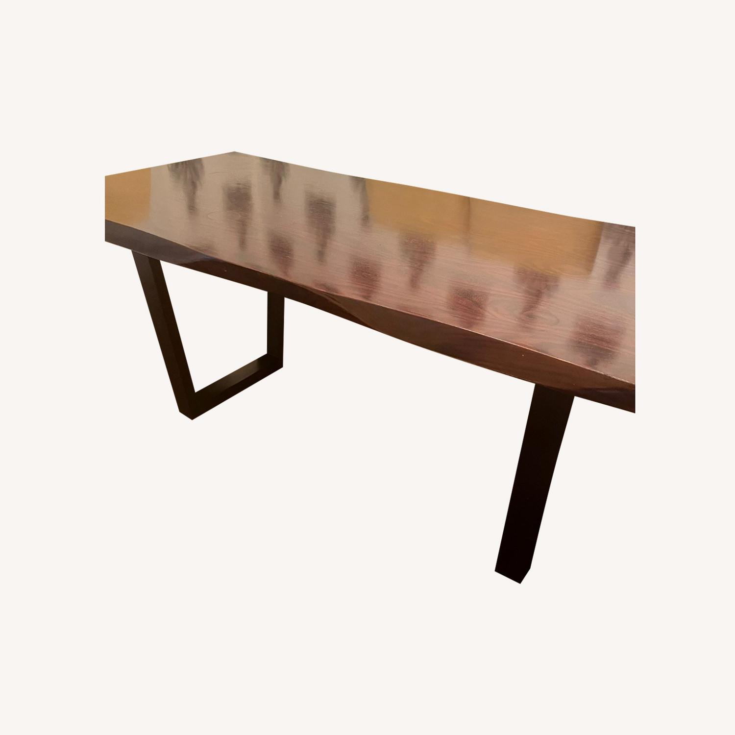 Seller's Notes:Beautiful 6 seater Mitchell Gold + Bob Williams dining table - perfect for an apartment - will upgrade any home. Dark walnut free form rectangle table with brass base.