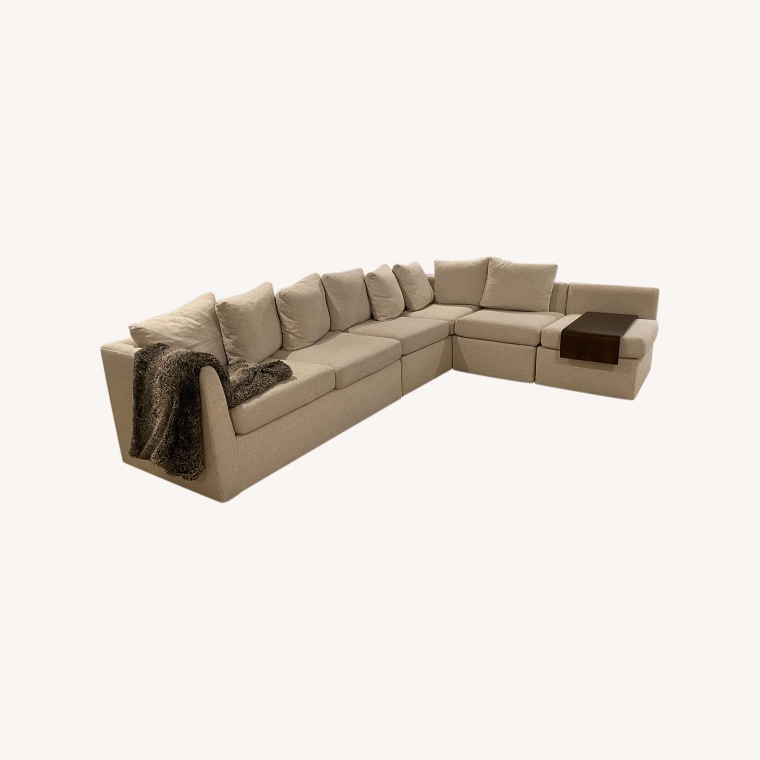 Seller's Notes:Mitchell Gold + Bob Williams 4-piece sectional. Natural ecru fabric.