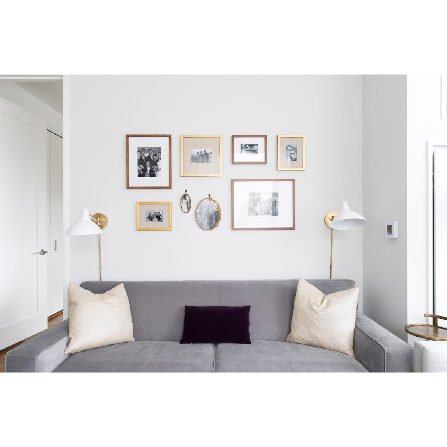 Seller's Notes:Mitchell Gold + Bob Williams Jean Luc Sofa 80" sofa (80"w 36"d 31"h) - Boulevard Velvet Light Grey/TWO cushions