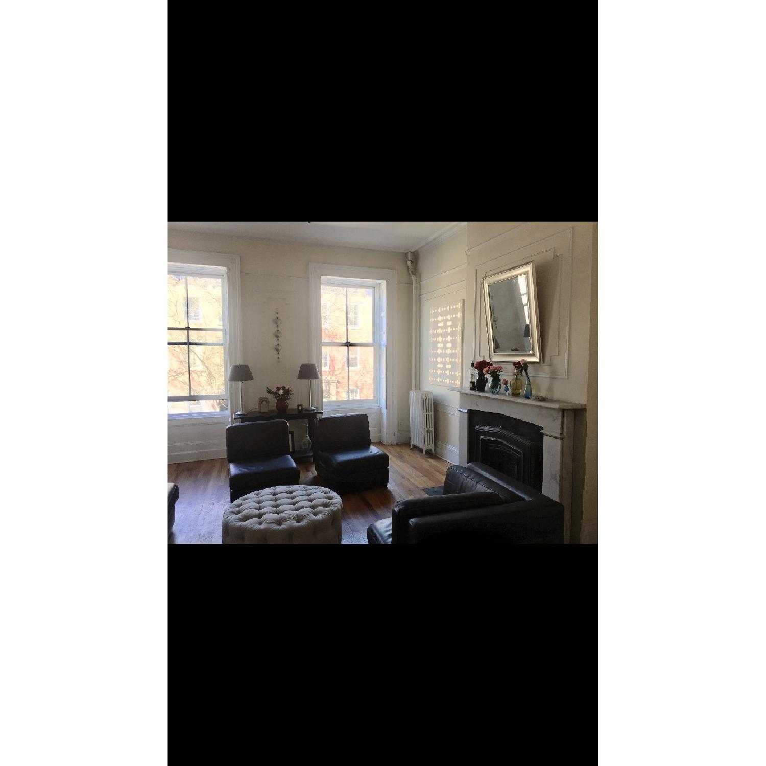 Seller's Notes:Beautiful, comfortable, clean, classic black leather sofa. Pieces latch together or can be used as separate pieces We have polished and maintained well. You will love !