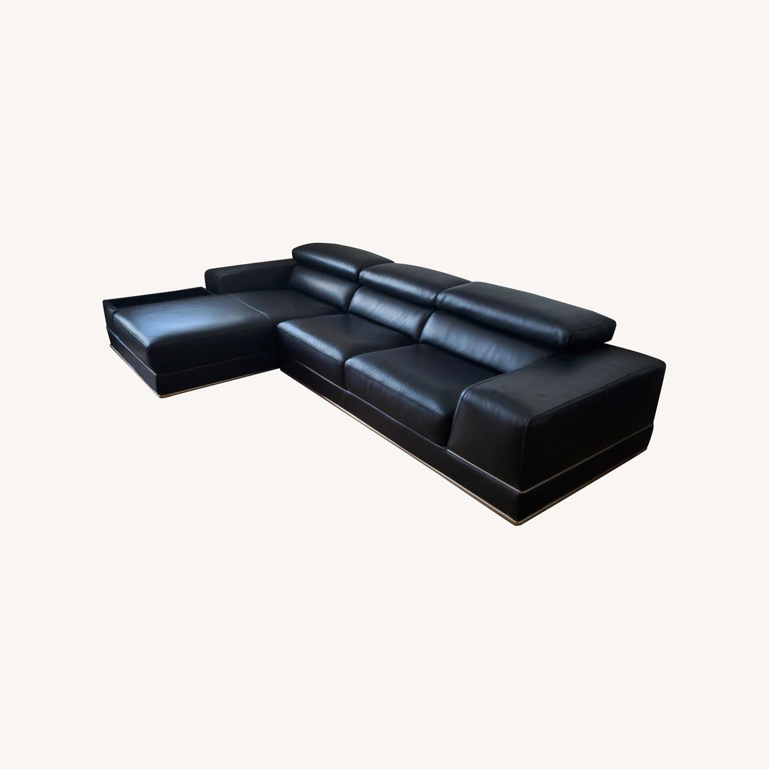 Seller's Notes:This sofa is in very good condition. The three headrests can flip up as shown. The end seat can extend as shown. The chaise compartment piece can flip upside down to leather as shown.