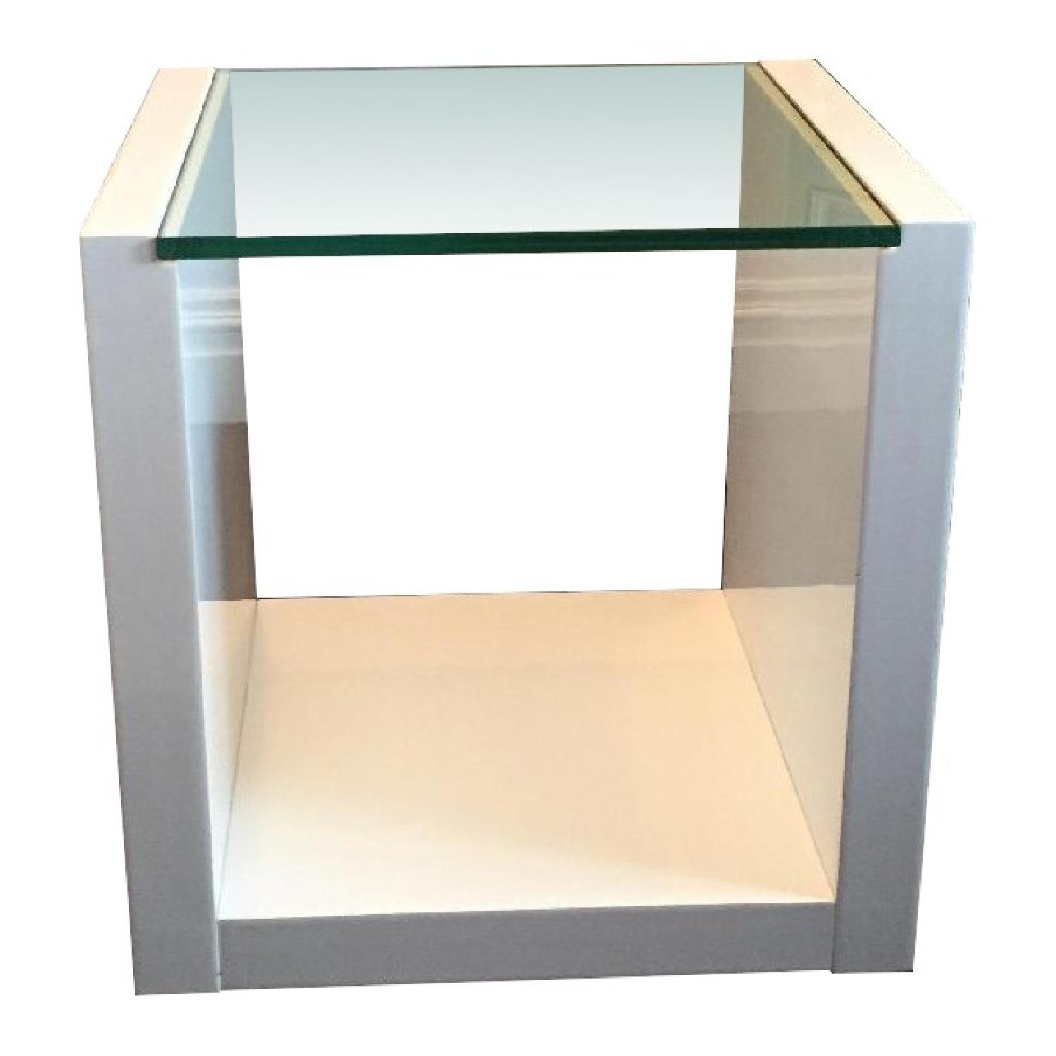 Seller's Notes:This side table has barely been touched, it's in great condition. It's shine white with a glass top and space to store coffee table books, etc underneath the glass. It's from Modani called the Flavia Side Table.