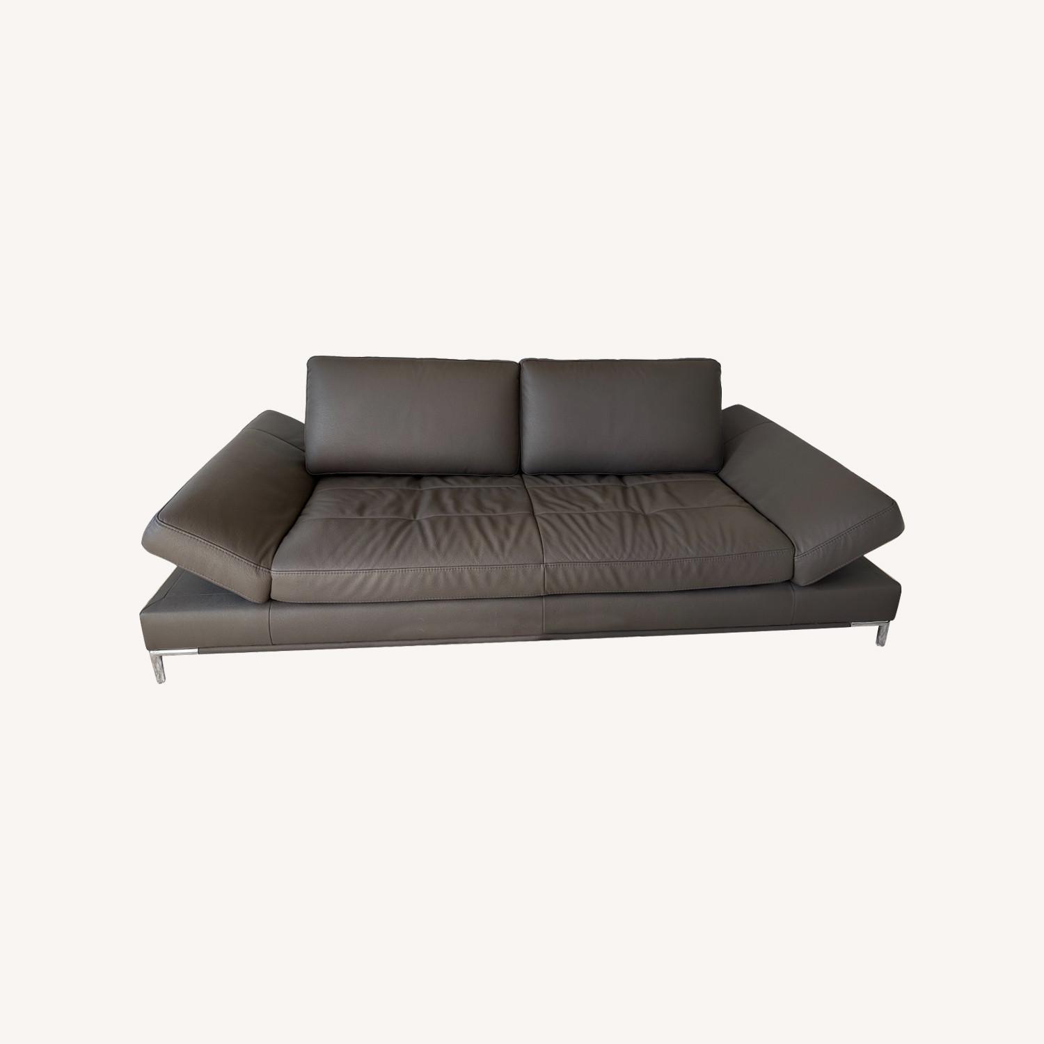Seller's Notes:Modani Leather Adjustable Sofa. Cleverly engineered with two adjustable back cushions which swing forward for varying depths. Sides tilt up with a self stabilizing mechanism to hold place as well. High density foam construction is combined with high grade leather for a durable and luxurious feel. Base is a tapered chrome leg. Excellent condition - selling due to move.