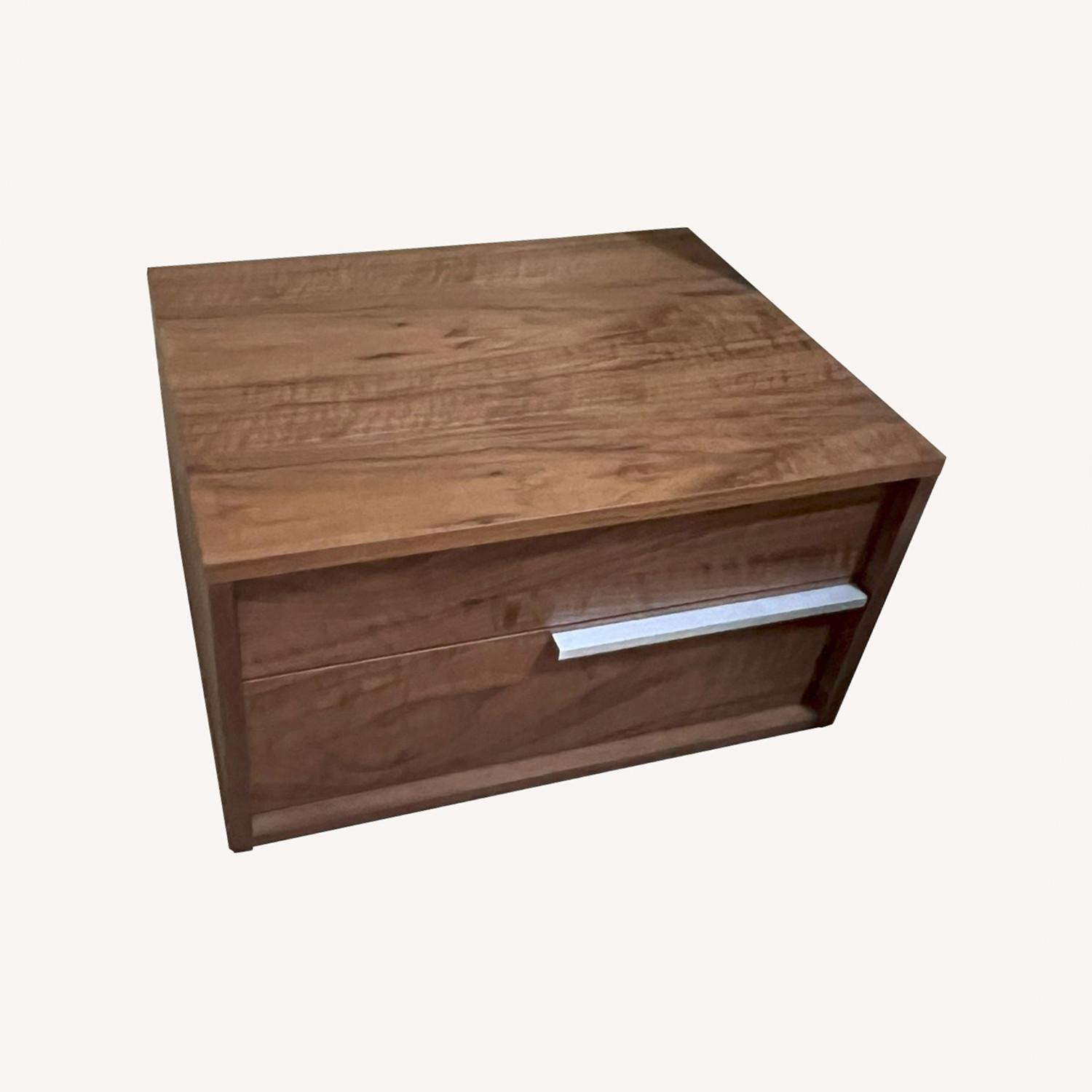 Seller's Notes:Say hello to Veneto Nightstand. Featuring two spacious drawers in walnut, the Veneto Nightstand headlines in both style and functionality. Pair this piece with any Modani bed for a striking modern look.
