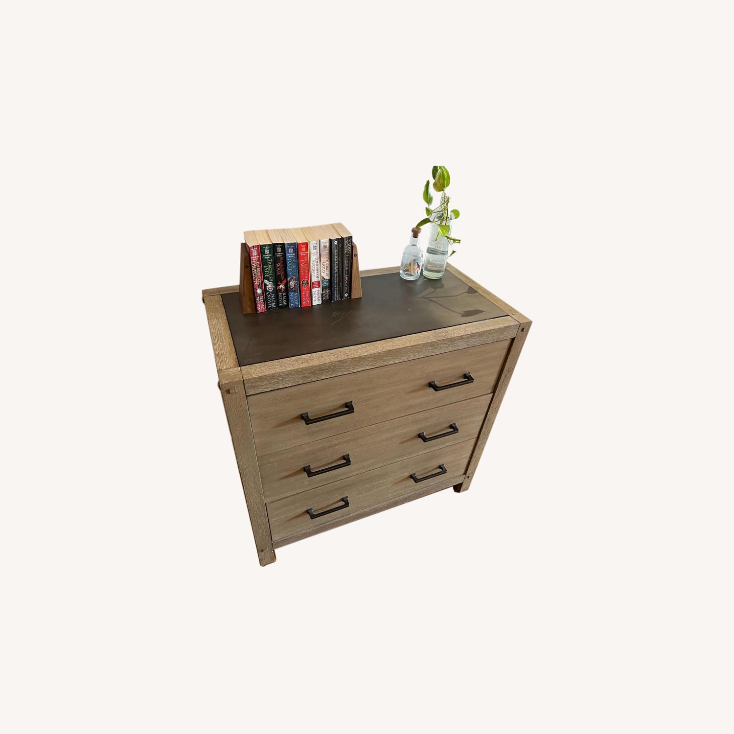Seller's Notes:Sturdy (read: heavy!), light brown, modern, 3-drawer dresser. Good storage space, drawers function well, does what it's meant to do! Some scratches/imperfections (pictured).