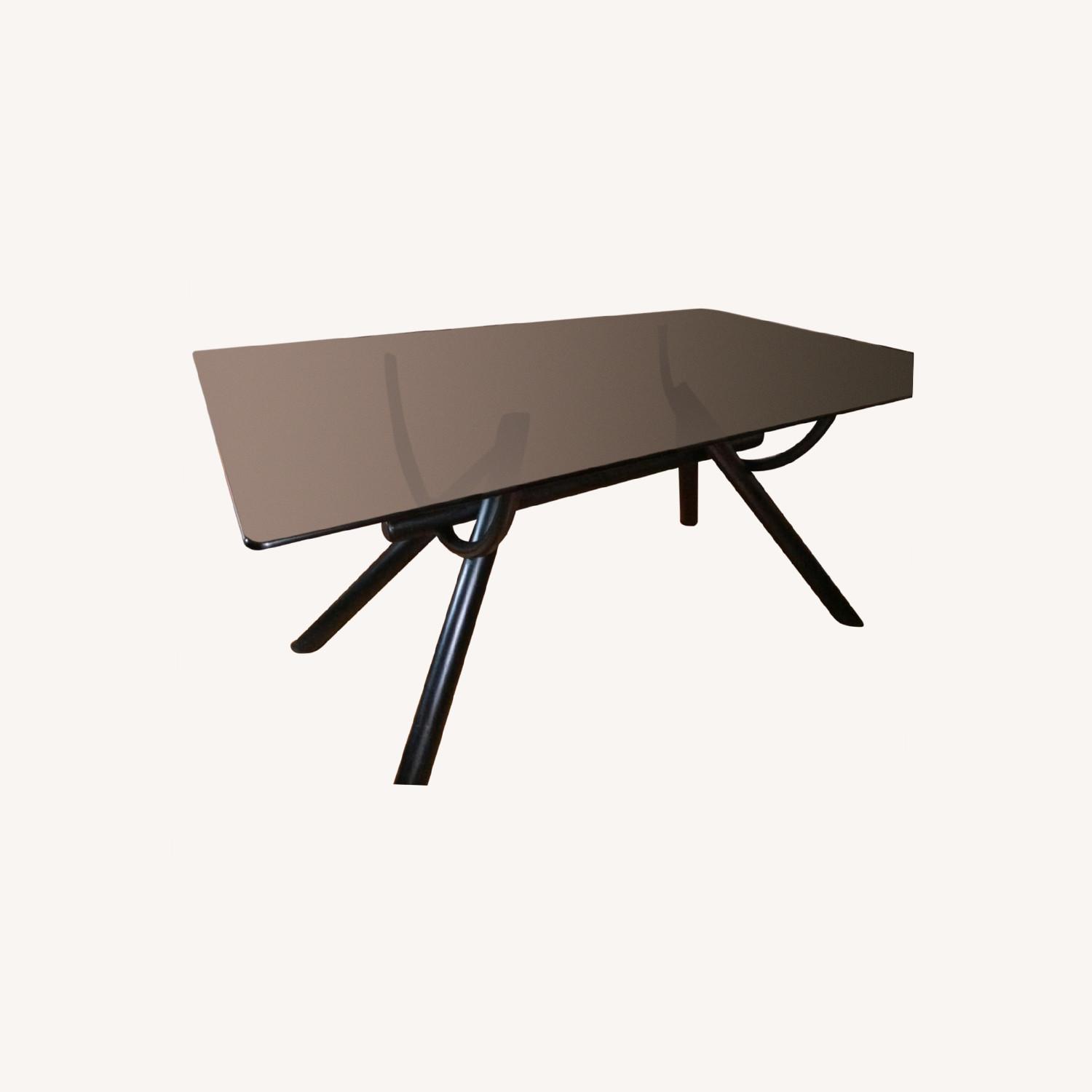Wear and tear details: scratches, a small chip in corner of tabletop