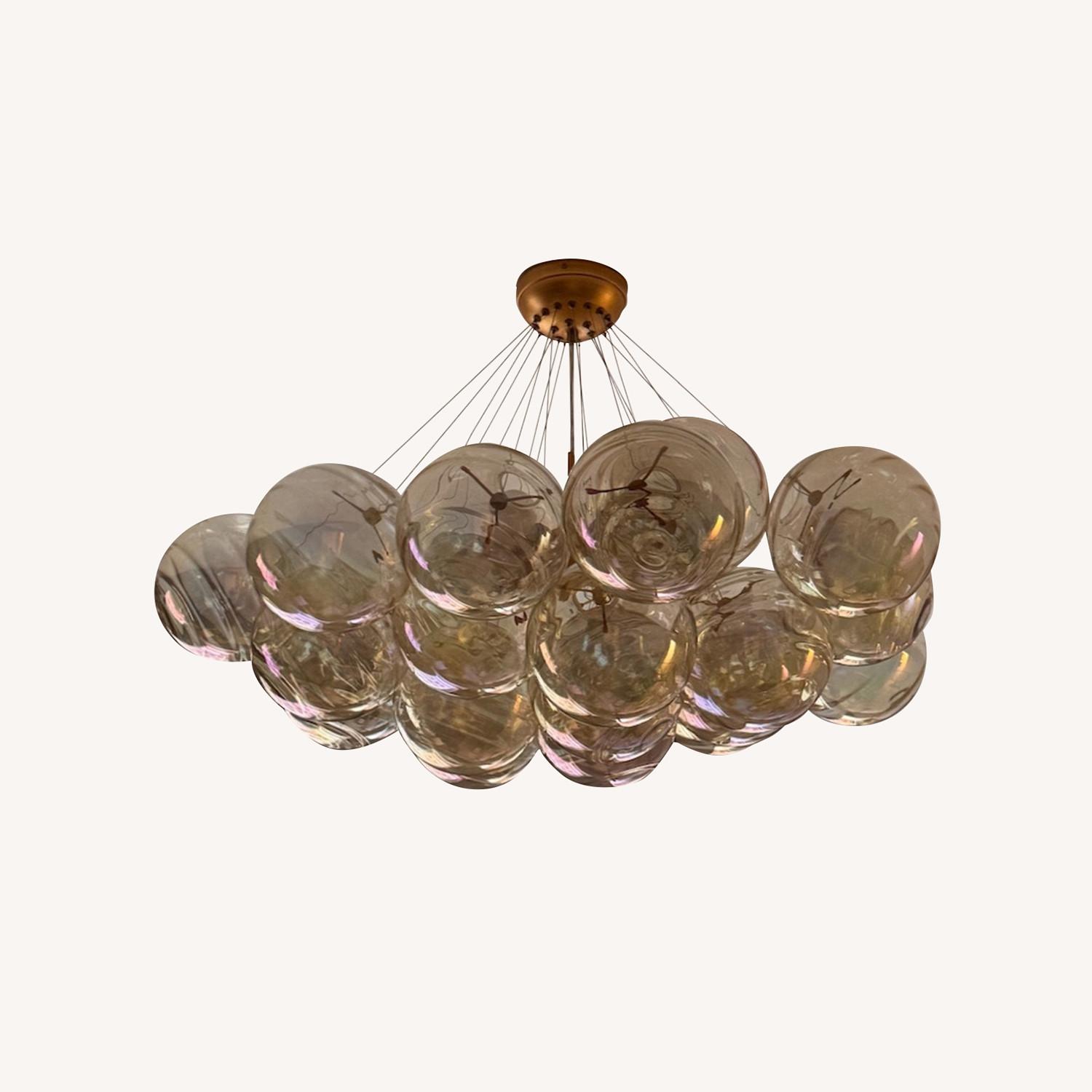 Seller's Notes:This chandelier is a modern and effervescent statement piece. The Cielo features six lights framed by clear glass globes and finished in a rich antique gold leaf, creating a warm, luminous glow and a striking visual centerpiece. Details: antique gold and clear glass finish 6 feet of adjustable cord; 41W X 41D x 22H (as pictured); maximum height 98 inches 6 light 60 watt medium base bulb recommended; not included canopy size 5 7/8 inches; can be used as semi flush