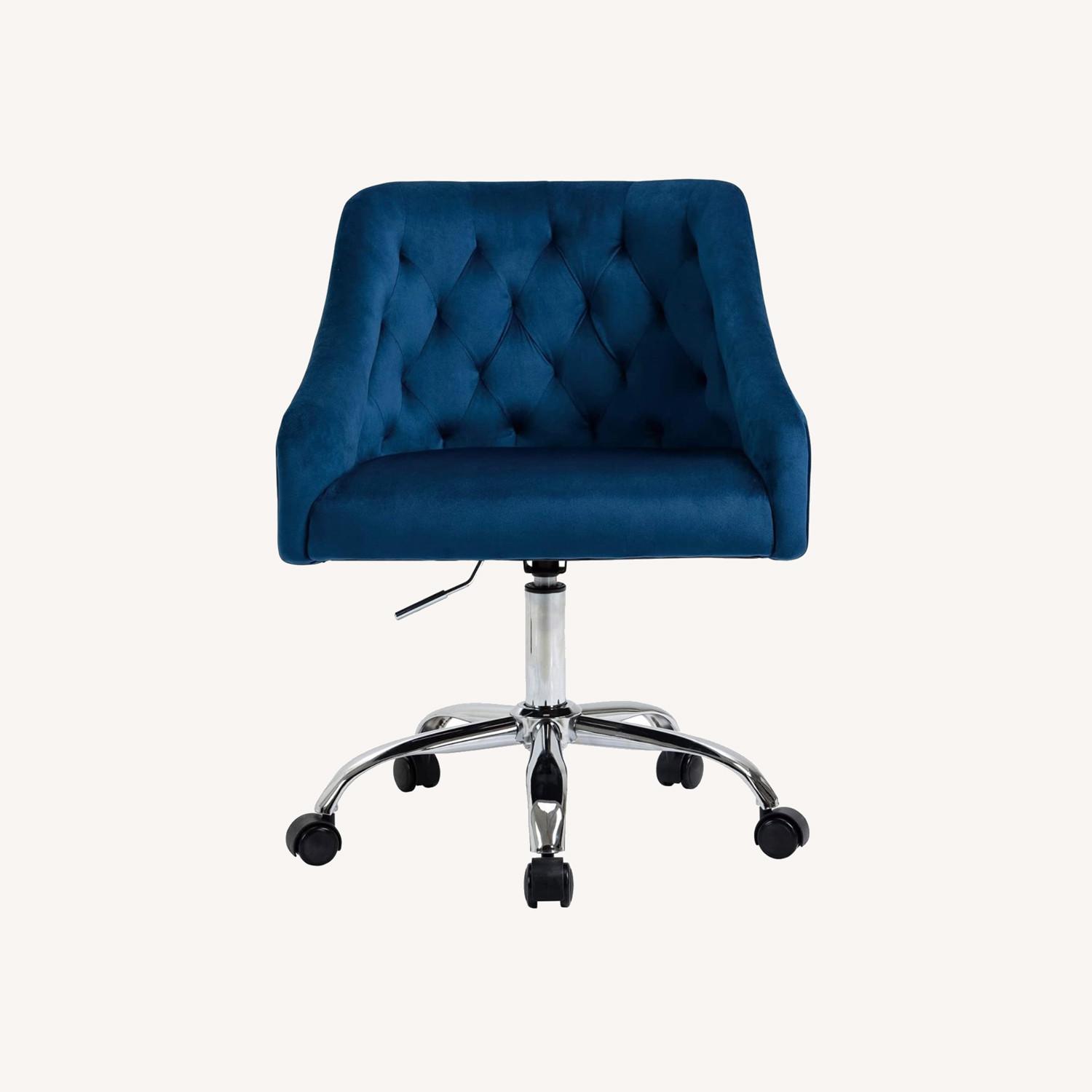 Seller's Notes:Modern dark blue velvet office chair. Adjustable height. Very lightly used, no signs of wear and tear.
