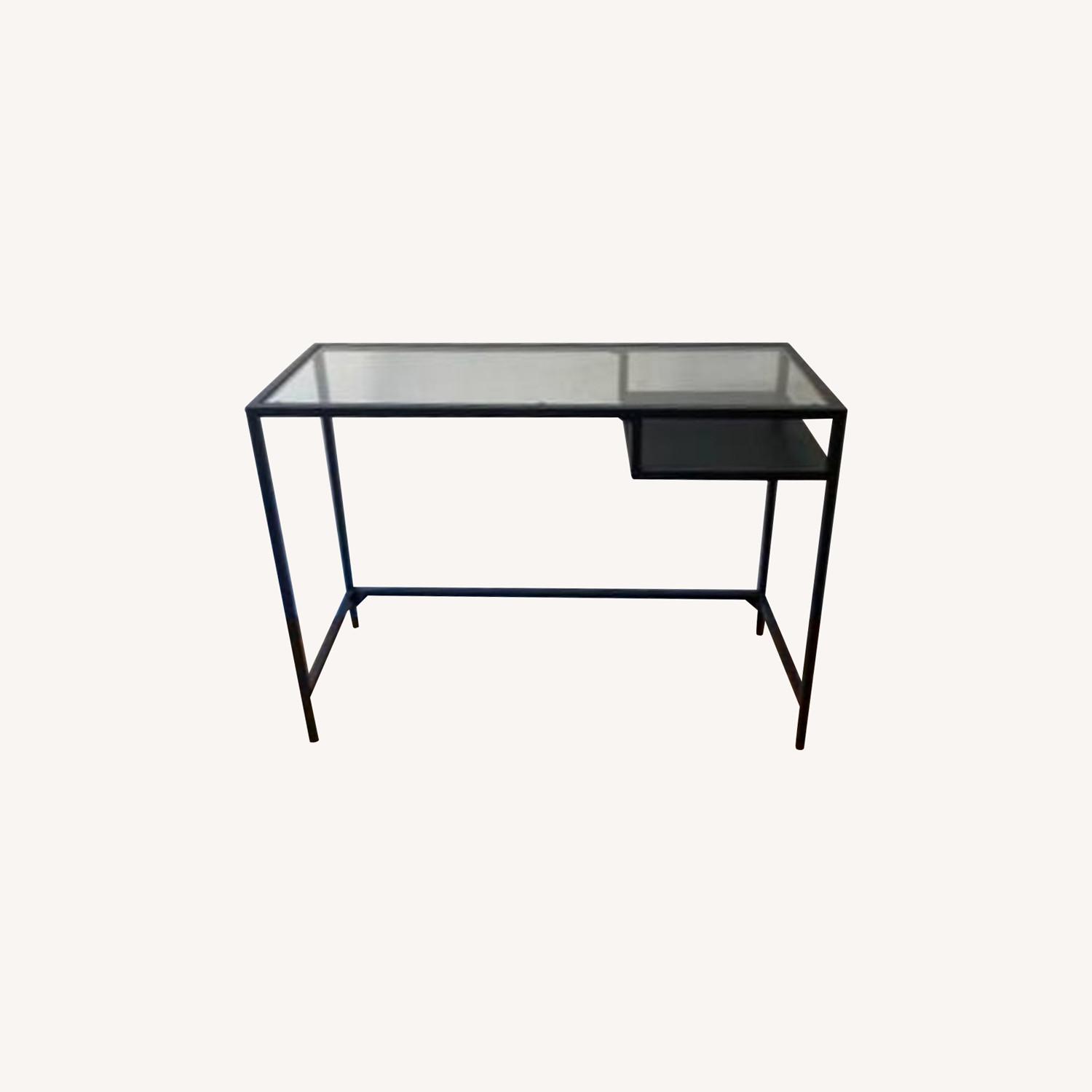 Seller's Notes:NEW matte black metal desk frame with glass top. Barely used. MOVING SALE everything must go this week! Pick up in Soho. I am a normal person! Email me with any questions but if you are *thinking* about picking up this desk, it has been in a safe and clean environment. 39.5"x 29" x 14"