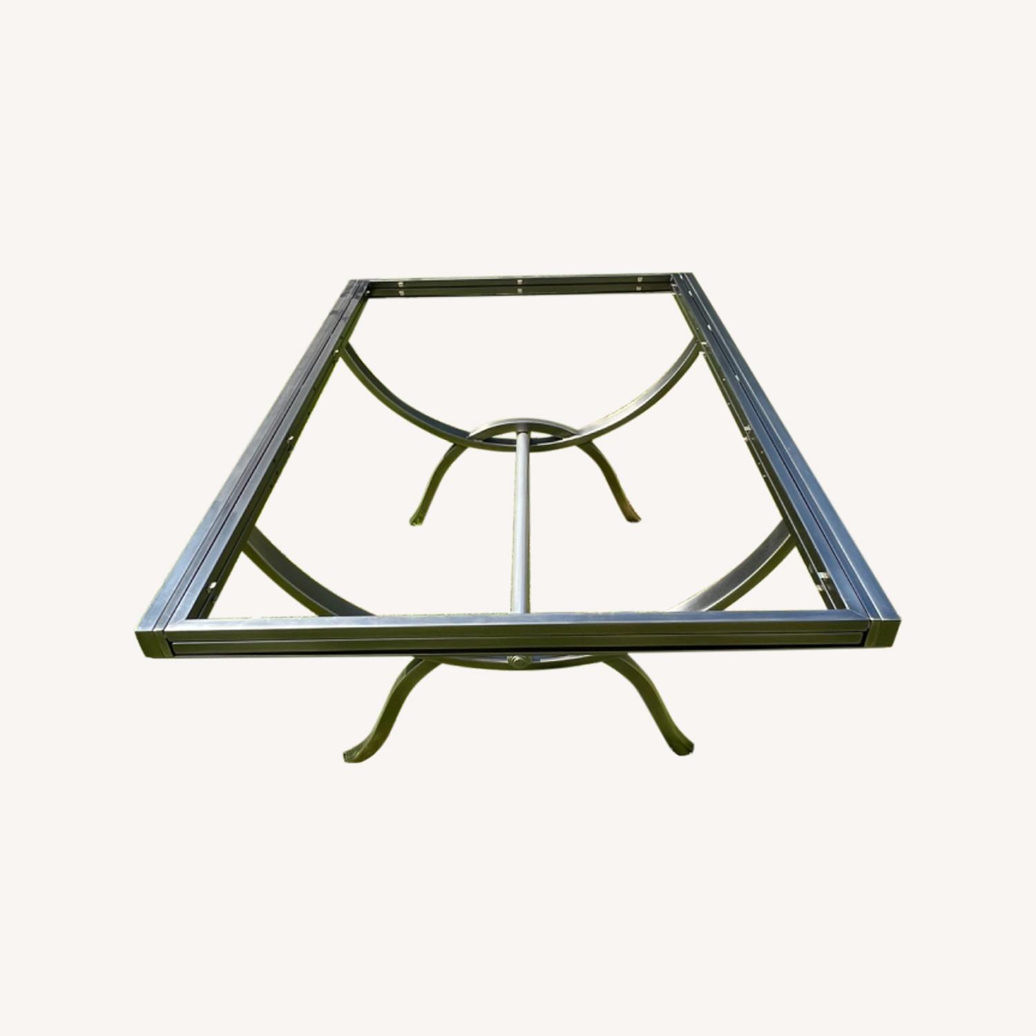 Seller's Notes:DIA Mid-Century Modern Glass & Brushed Chrome Extendable Dinning Table w/6 chairs (4 chairs, 2 with Arm rest) with glass (taken out to not get broken) originally $4000. Leaf to table is attached and rolls out on the track in table. Will seat up to 14 people when table is open 40” x 60” closed 40” x 120” Open