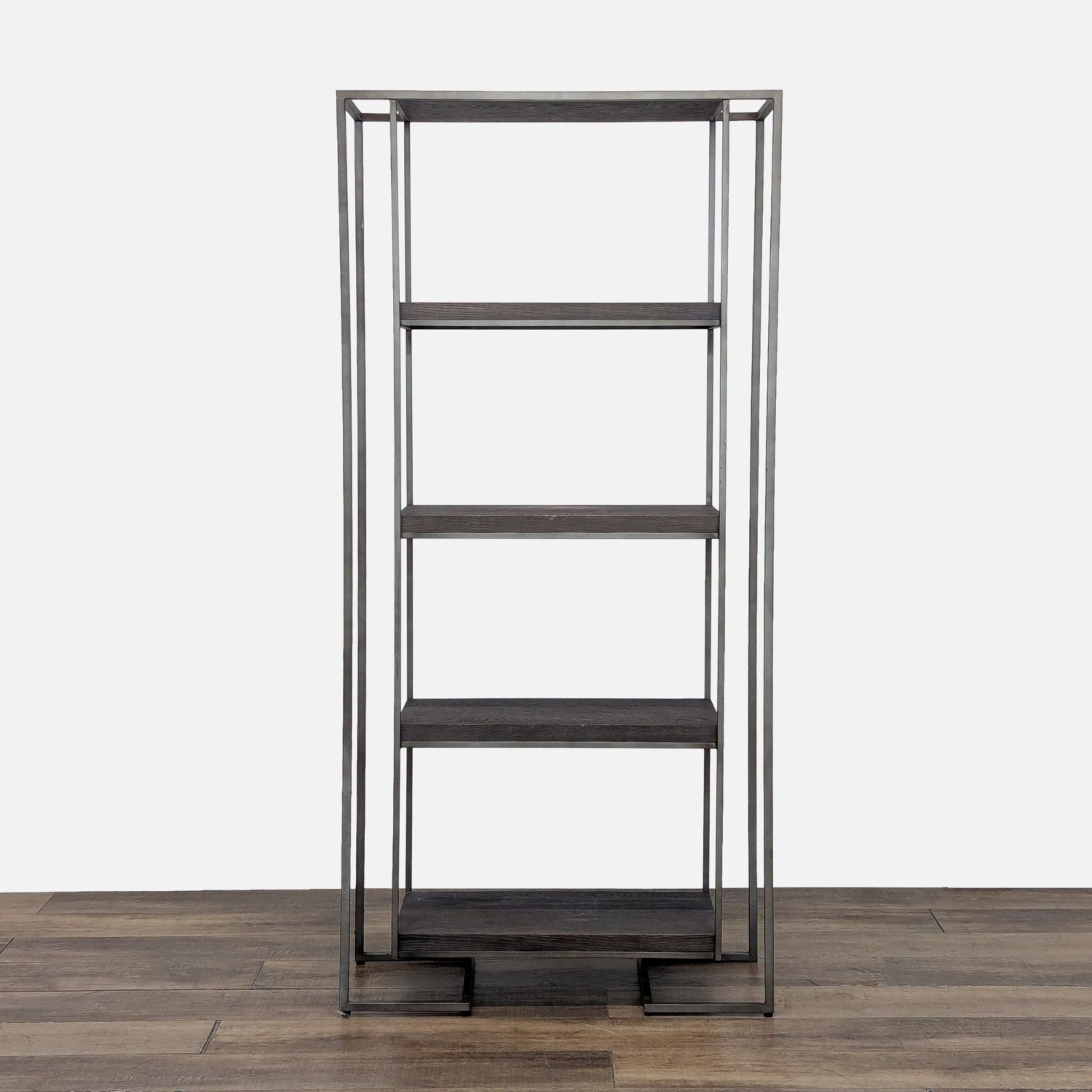 Seller's Notes:Features a minimalist design with dark-toned shelves and a metal frame.
