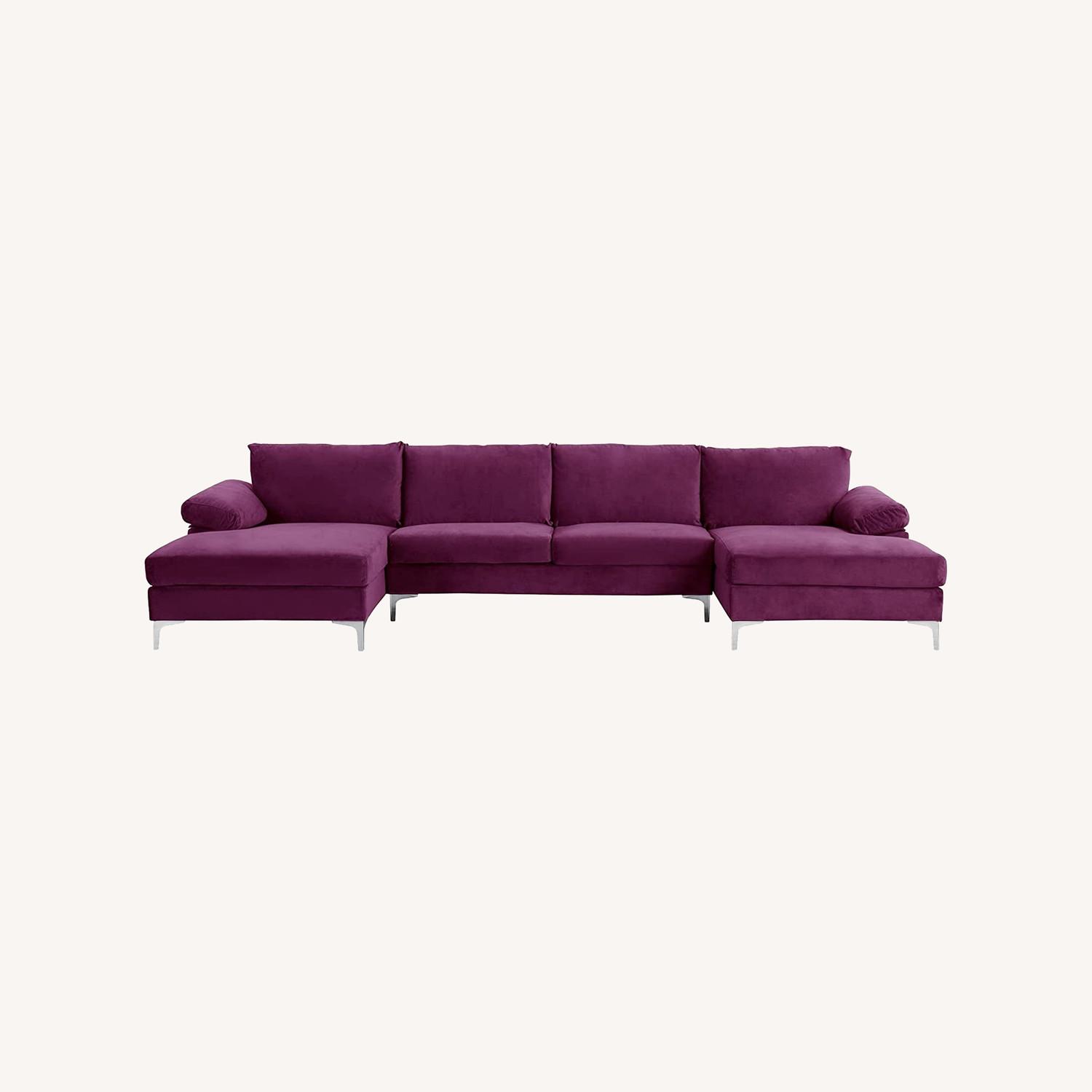 Collection: Modern Large Velvet Fabric U-Shape Sectional Sofa, Double Extra Wide Chaise Lounge Couch, Lilac