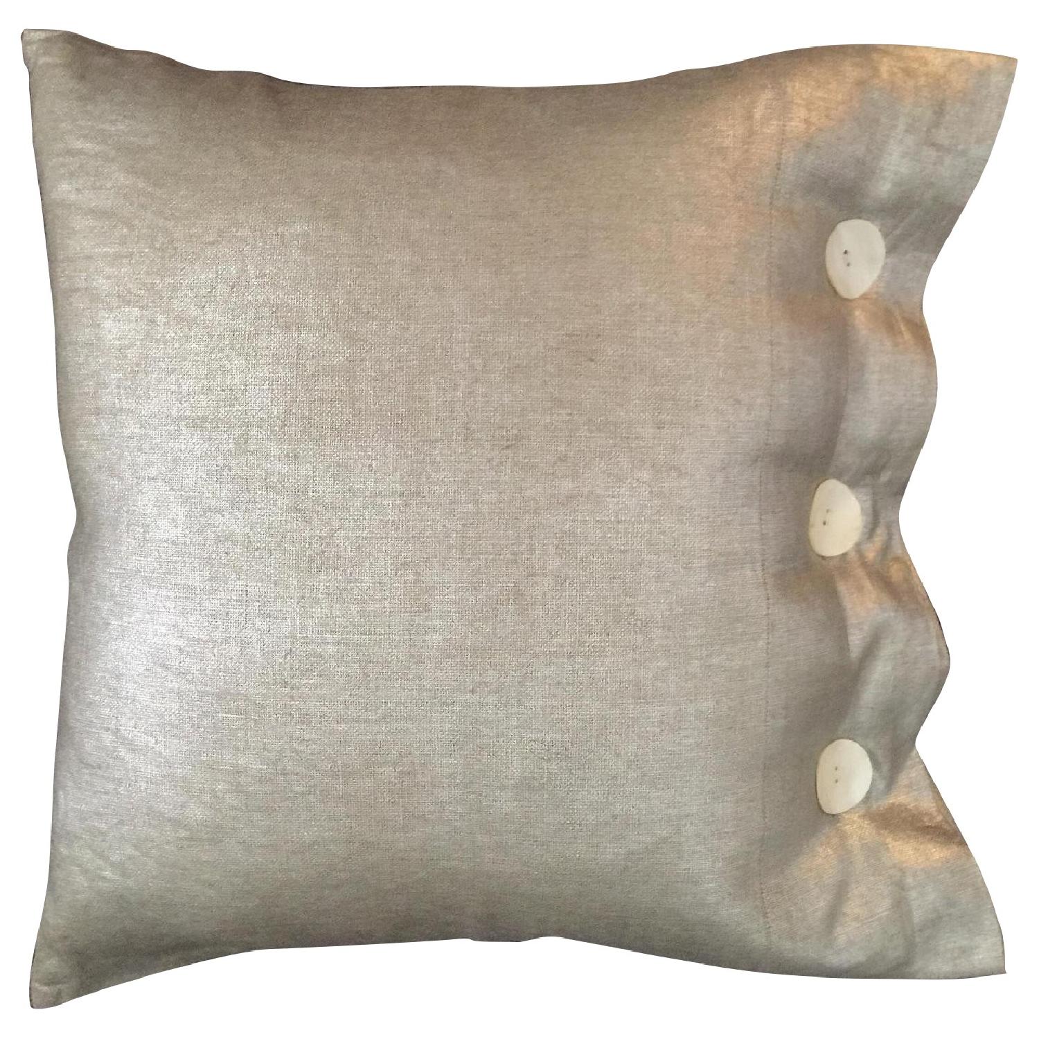 Seller's Notes:Bring fearless fashion attitude to your home with this luxe contemporary metallic-linen pillow. Beautiful large mother-of-pearl buttons make a design statement in addition to the unique metallic finish on the heavyweight soft hand linen fabric used in the pillow slip. Pillow insert included