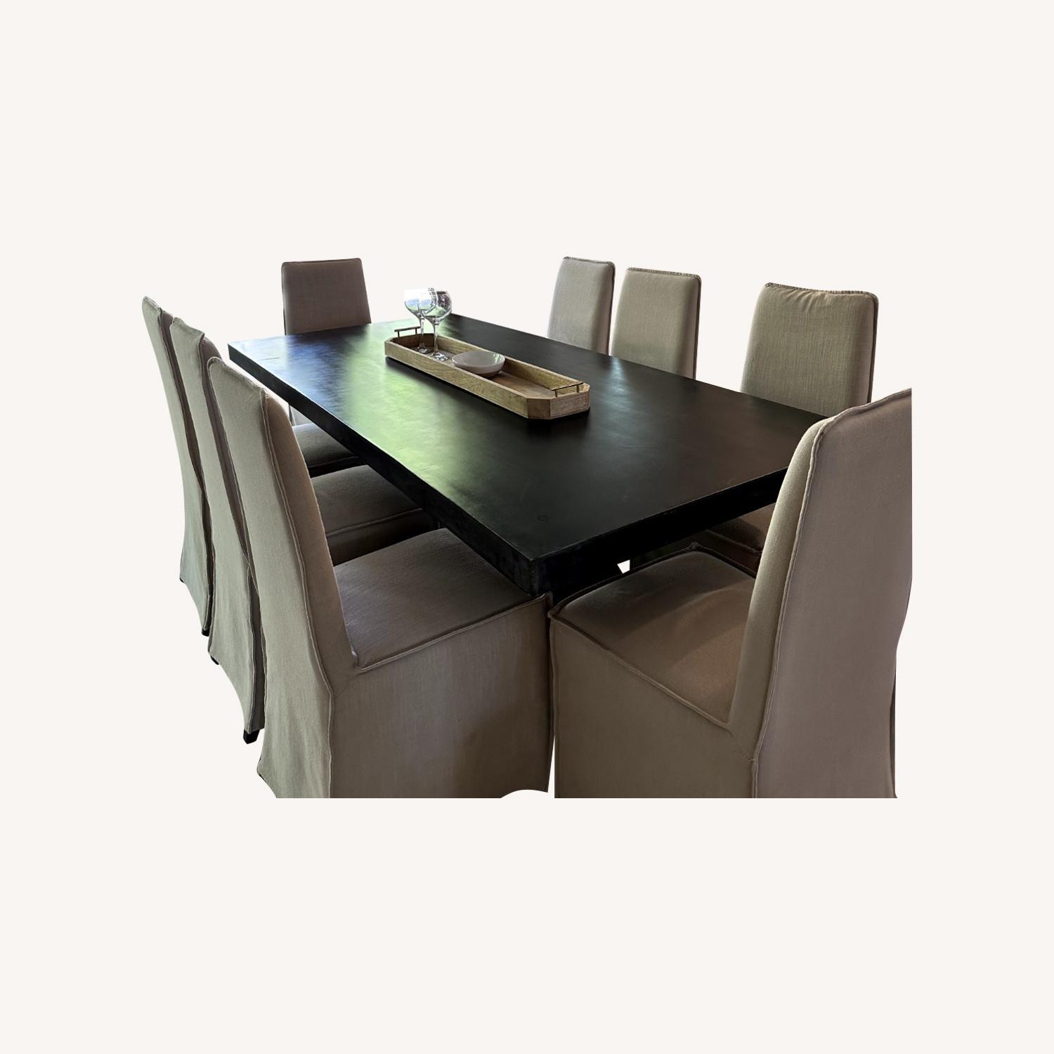 Seller's Notes:Modern indoor/outdoor metal dining table. Purchased for $2000 and in great condition with very minor, unnoticeable blemishes. Selling because we are downsizing homes and although it's a great table, it just won't fit!