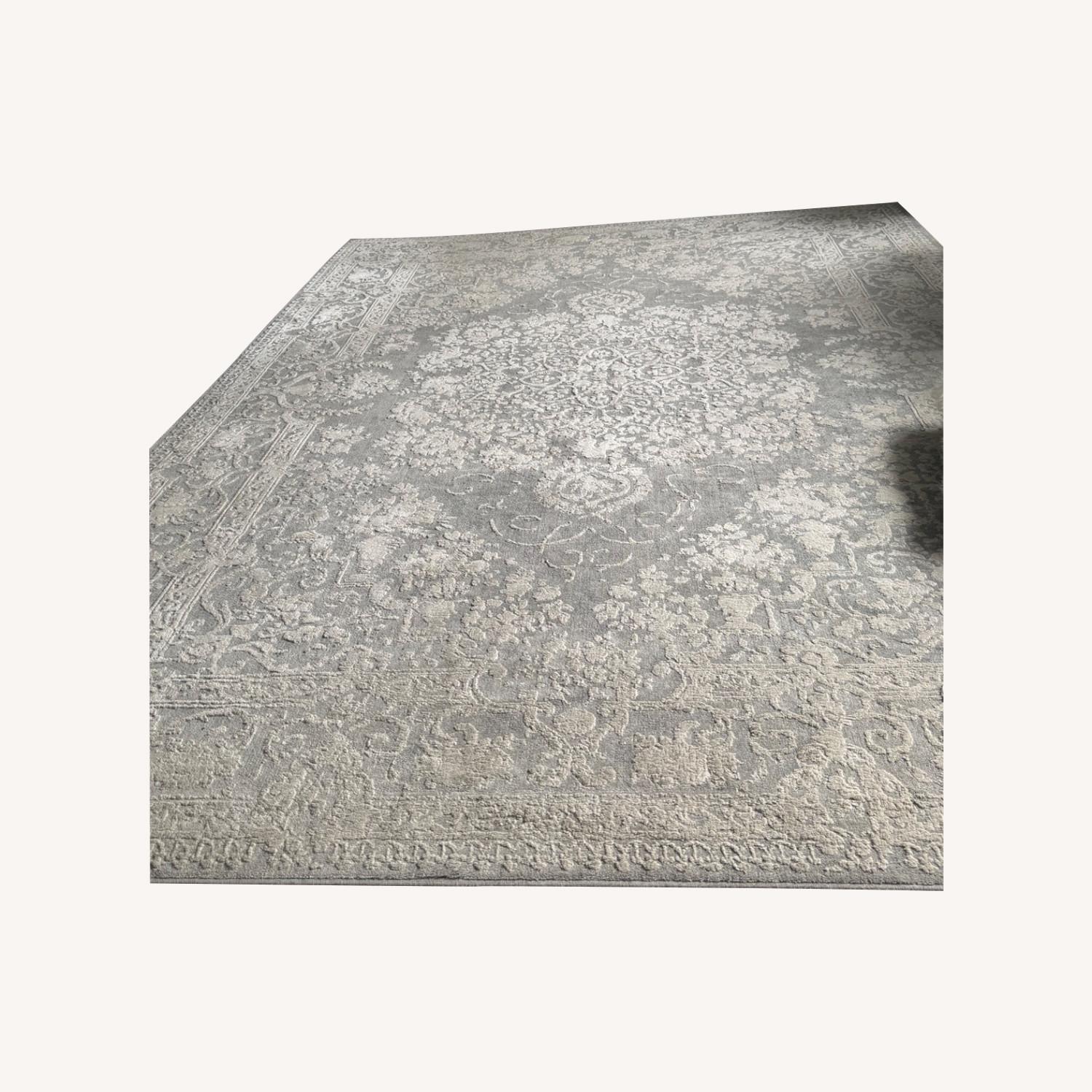 Seller's Notes:Elegant area rug featuring a stylish mix of modern and oriental-inspired design in calming white and grey tones. Soft underfoot and visually striking, it’s the perfect centerpiece for any living space. Details: • Dimensions: 7.5 feet (90 inches) x 10 feet • Color: White and grey with subtle patterning • Style: Contemporary with oriental influence • Soft, durable, and easy to clean