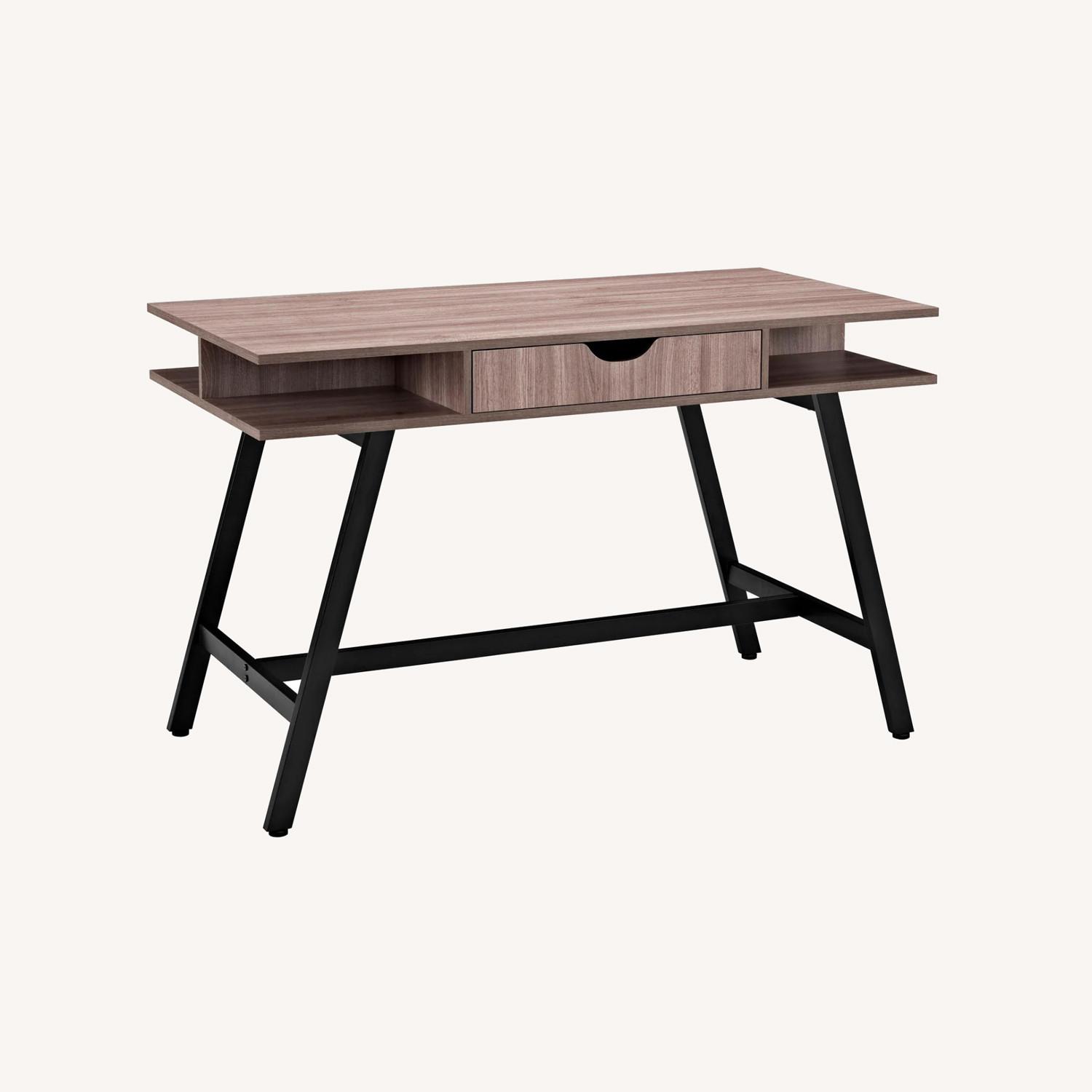 Seller's Notes:We are selling our Modern Rustic Natural Colored Office Desk with storage shelves underneath. The Desk is in great condition and super practical. It's not too big and not too small, perfect for studying or working at home. It fits Rustic and modern/contemporary decor and makes a great accent item. It was used for a short few months project and is no longer needed. Please see our other listings if you are looking for anything else https://www.aptdeco.com/seller/45478
