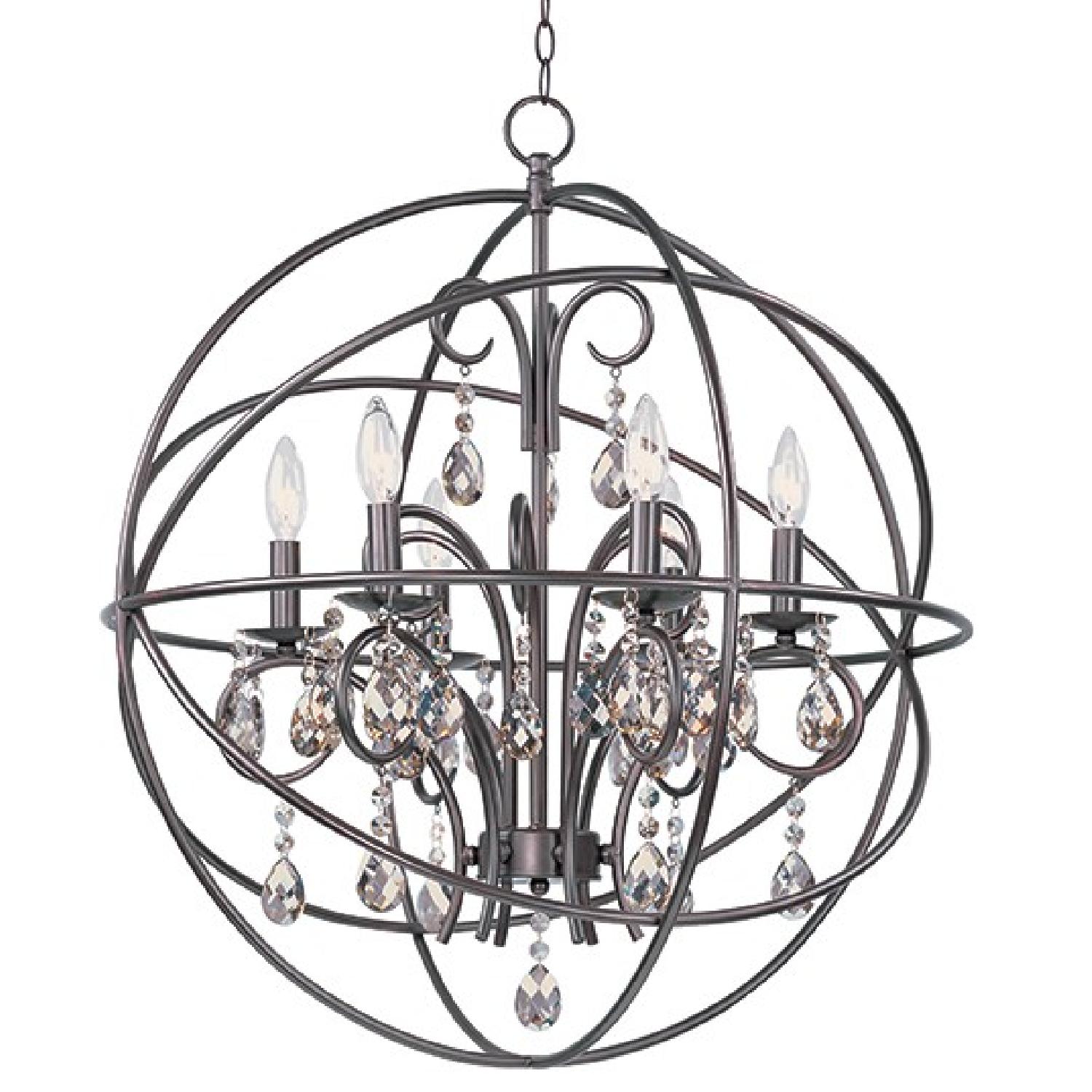 Seller's Notes:Maxim Lighting 6 Chrystal Light Pendant Sphere in Black. Modern & sleek. Like new condition. Seller moving out of state. Job transfer. Lamps.com: Maxim Lighting - 25144OI - Orbit Oil Rubbed Bronze 6 Light Pendant