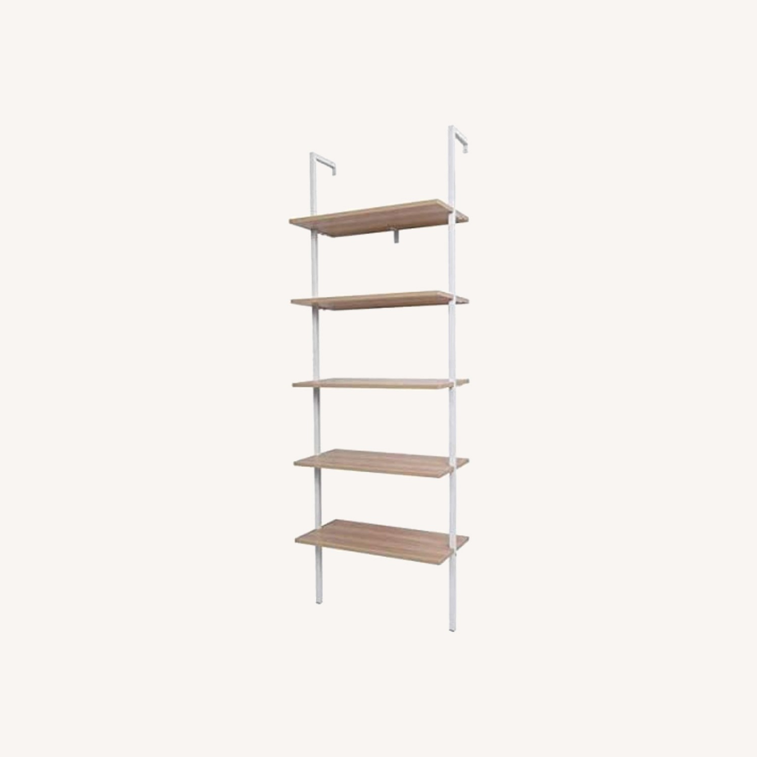Modern Tall 5 Wood Shelves White Bookcase Ladder