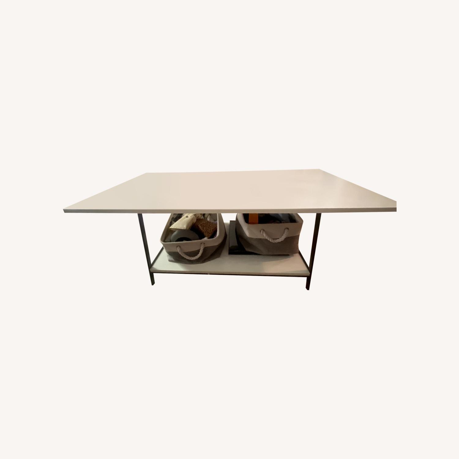 Seller's Notes:Gently Used Modern Two-Tier White Wood and Metal Coffee Table in perfect condition