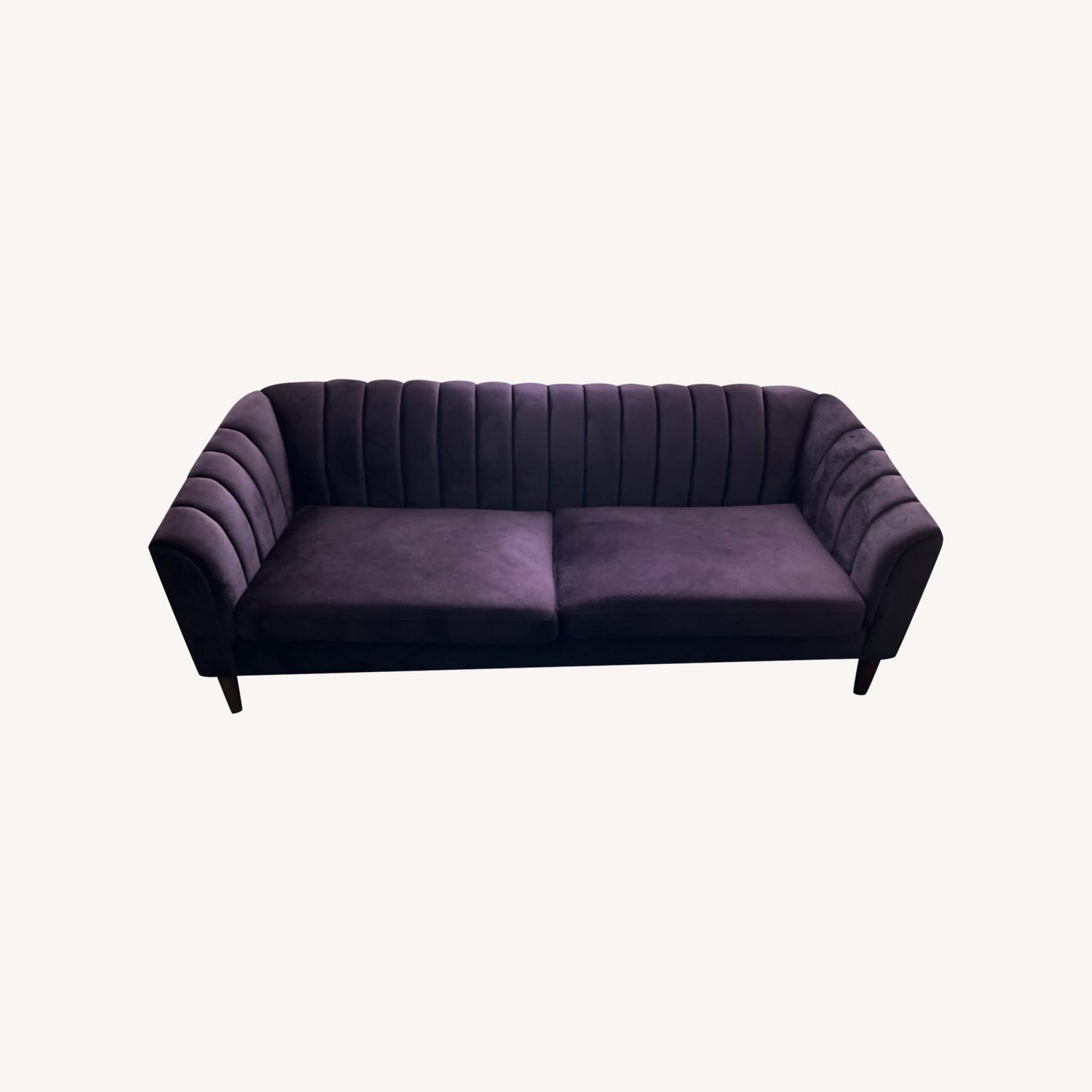 Seller's Notes:Modern couch that is quite stunning with a deep purple color velvet and walnut wooden legs. I am selling this couch because I am looking to replace it with a sleeper couch.