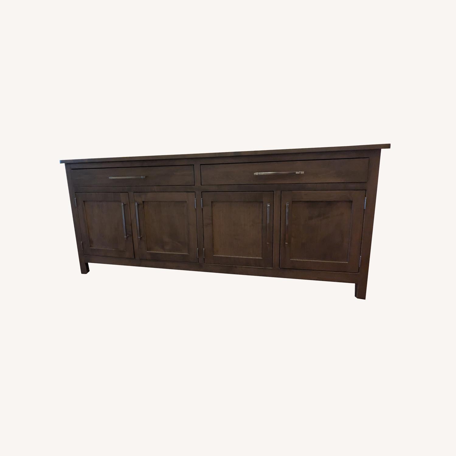 Seller's Notes:Add both style and incredible functionality to your home with this versatile console or sideboard. Featuring a clean, modern design and a beautiful warm wood finish, this piece offers abundant storage with two spacious drawers and four cabinet doors, each equipped with sleek metal pulls. Perfect for a dining room, living area, or entryway, it can serve as a media console, buffet, or general storage solution. Its contemporary aesthetic ensures it will seamlessly integrate into various decor styles.