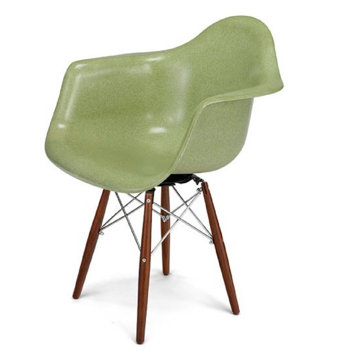 Seller's Notes:Modernica Eames Fiberglass Swivel Arm Chair. Perfect condition, no scratches or blemishes on the seat or legs. Dowel base in Walnut and Zinc Wire Color is celery -- refer to website for the swatch Retails for $479 Modernica is the original fabricator for the Eames fiberglass chairs before Herman Miller became the exclusive owner of the Eames name. This is the real thing as it was intended to be made! http://modernica.net/dowel-with-swivel-base-arm-shell.html