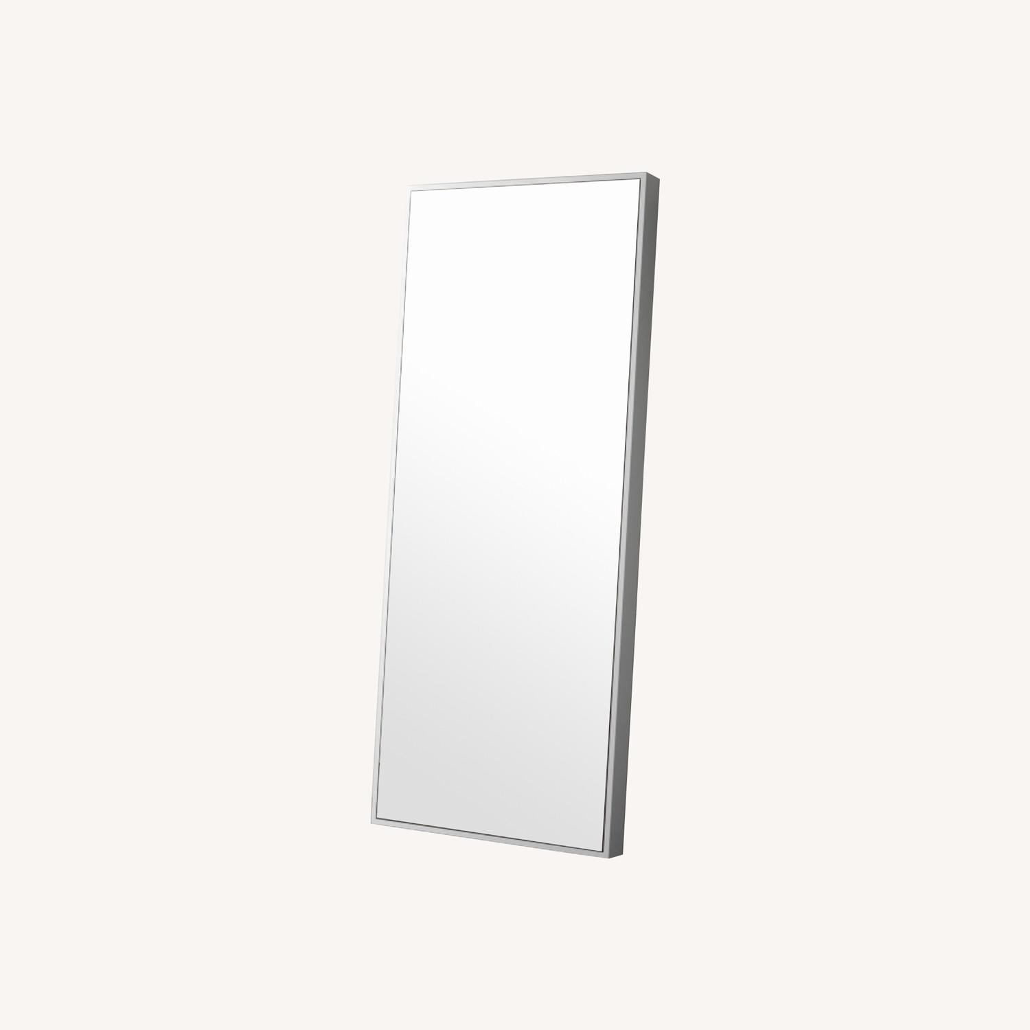 Seller's Notes:Glossy White Design with its slim proportions, the Greene floor or hanging mirror is the perfect accessory to brighten and open any space within the room. Supported by a sturdy box frame, the mirror sits flush with the frame creating an elegant profile. Display it as a modern floor standing mirror or mount it to the wall as a horizontal fixture for a nouveau look around the home Slim in design, place the mirror in a bedroom or in a hallway as an accent Measures 28in x 3in x 67in Imported Smoke Free and pet free home
