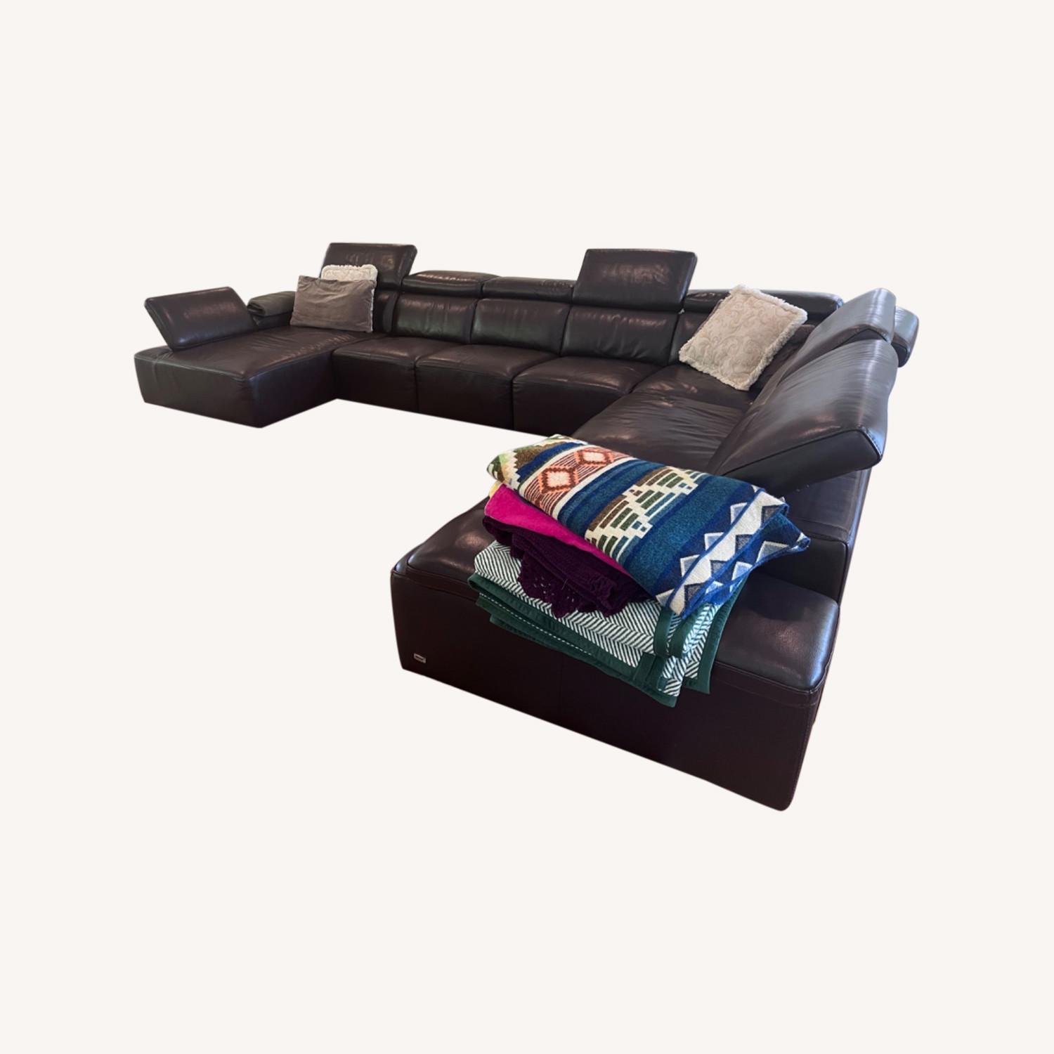 Seller's Notes:Modular walnut leather sectional includes right-side chaise and adjustable head and side rests.