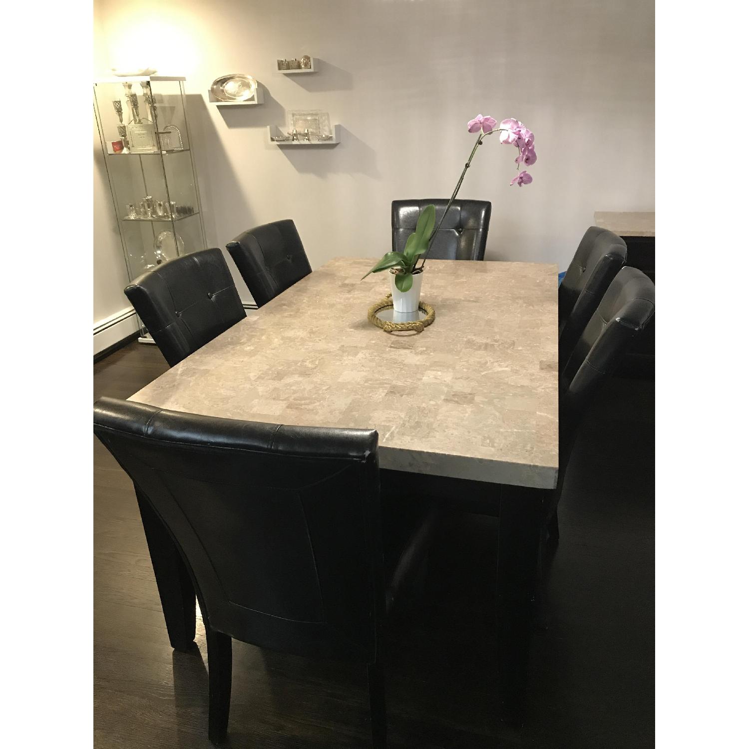 Seller's Notes:The table has a marble top and is in very nice condition. Table legs have minor nicks. The chairs are in decent condition but some of them have tears. We moved and therefore need to move this dining set out.