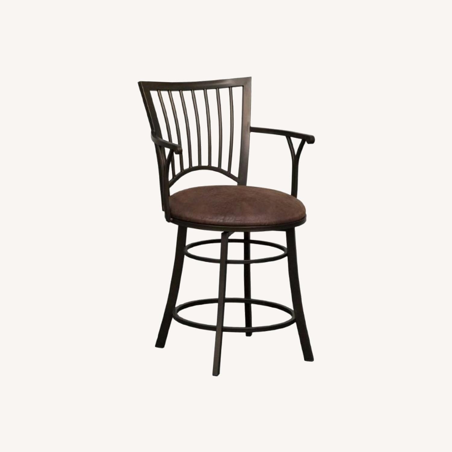 This 24" counter height barstool has a fully welded frame covered with a durable, dark bronze powder coat finish.