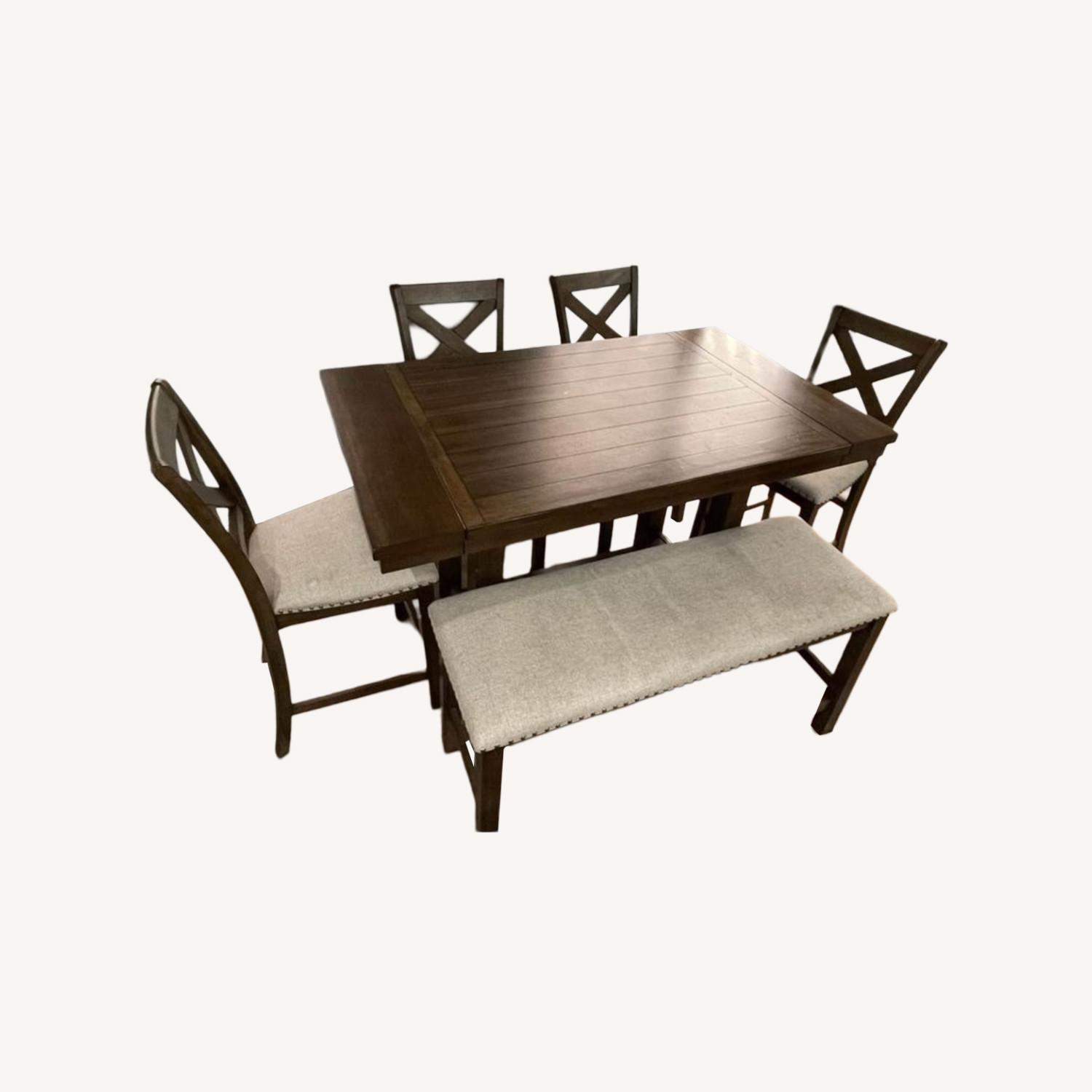 Seller's Notes:Moriville Counter Height Dining Table and 4 Barstools and Bench Beautiful high top dining set. Lightly used, 2 years old and fully assembled.