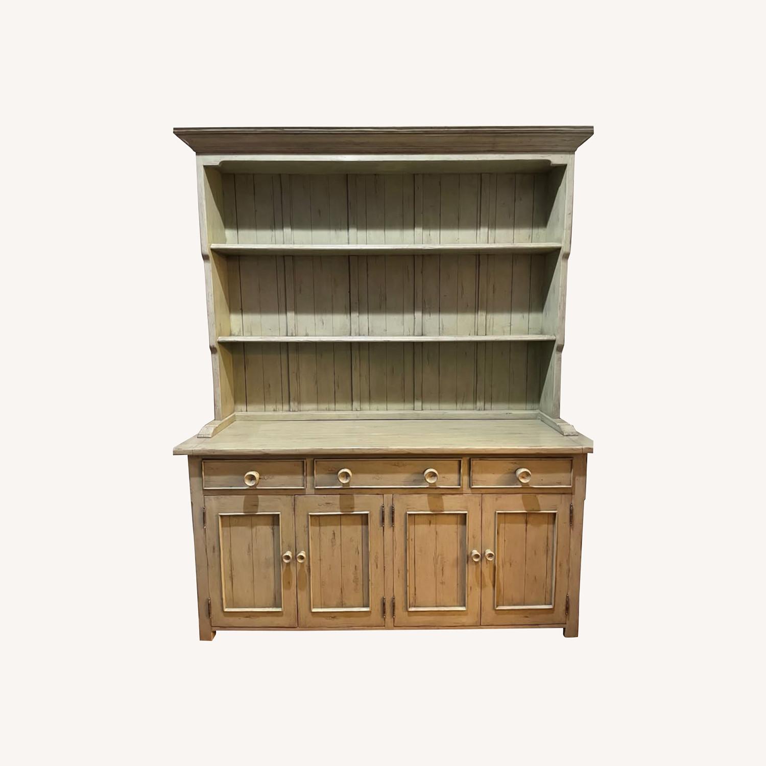Seller's Notes:This was a custom, very high quality built hutch. The top section of shelves can be removed, separated from the main base. I LOVE this piece and/but I need to turn this room into an office & guest room so this wonderful custom built peice will no longer fit.