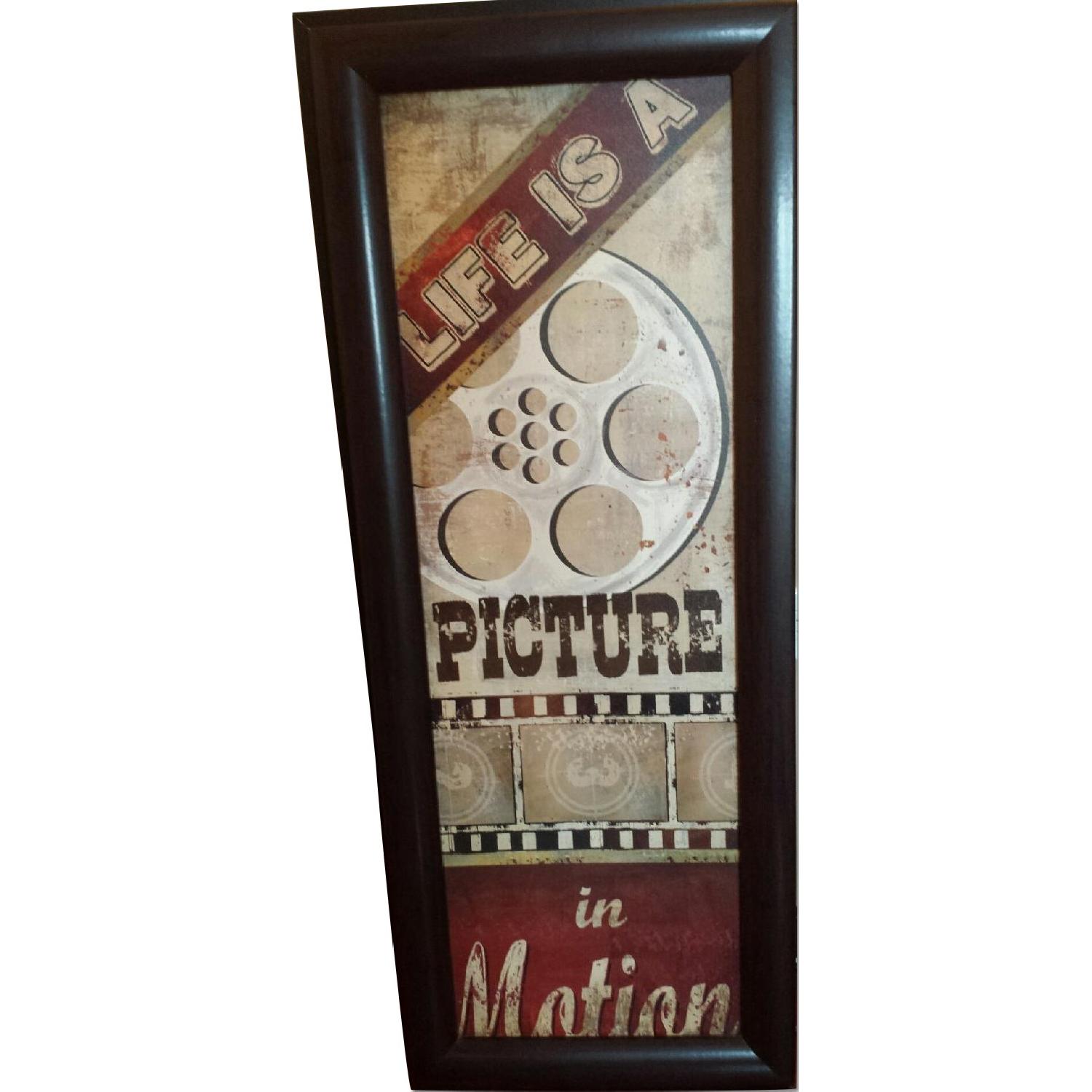 Seller's Notes:"life is a picture in motion" quote. Has a back wire for easy hanging. weighs less than 10 lbs. wood frame. painted on wood panel.