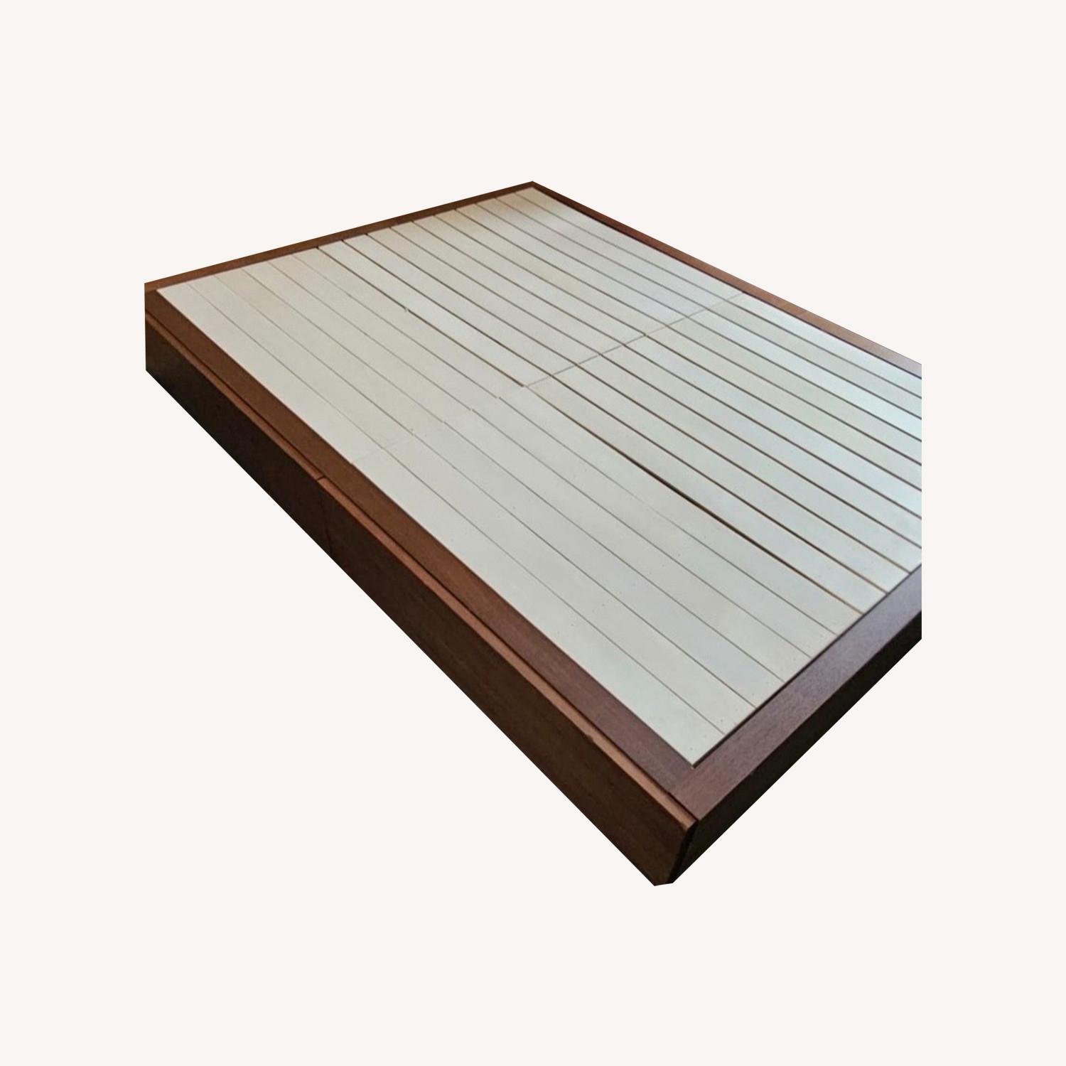 Seller's Notes:Excellent bed frame with two large drawers plus extra storage under the mattress. It's low to the floor, Japanese style, and we have a tatami mat on top of it (not included). We love the bed, but are reconfiguring the room for a second baby, and need a loft bed now. There is a small gash on the corner of one of the drawers. We use it without a headboard, but one can be purchased from Muji. Retails for $700 with drawers