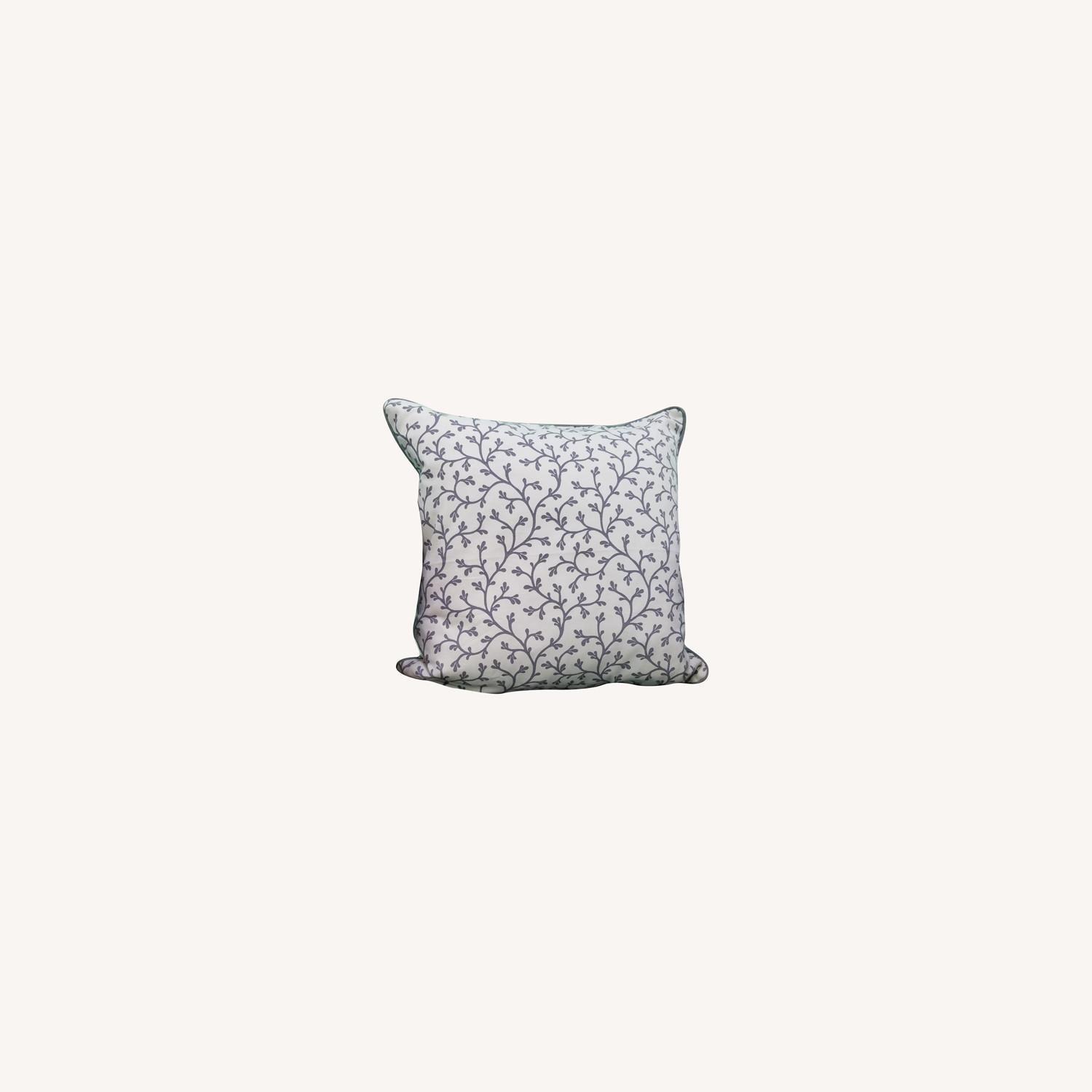Seller's Notes:This pillow cushion is new. The Cushion is of Cotton Cover material: White and Grey colors. Clean down feather filled cushions. Front or one side has flowers; while the other side is Stripped white and light Grey. So the cushion sides are interchangeable according to which side you can display front facing. You can interchangeable the sides, if you want your chairs or room to look or be decorated differently at different times of the year! You will enjoy this once in a rare lifetime cushion as an addition to your deco in your home space or to your already existing deco!
