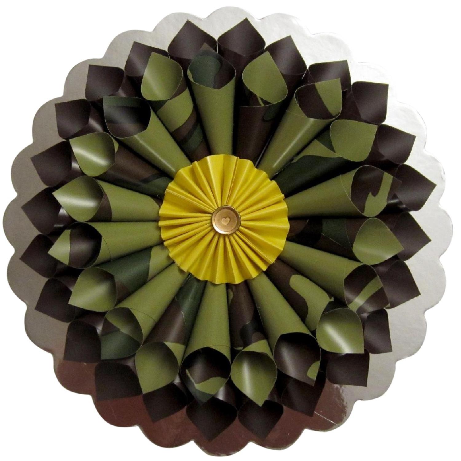Seller's Notes:This wreath's color scheme is dedicated to the military, but it's a great gift for anyone… This product looks like a blooming flower when hanging on the wall, but feel free to stand it upright on a shelf, mantel, or even a piano (like mine). The wreath is elegantly presented on a shiny silver plate that adds a rich touch and creates a sturdy base for hanging or standing. There is an eyelet on the back of the product thanks to which you can hang it on a tack, but you can also use an easel or stand for it to remain vertical. See more: https://www.etsy.com/shop/Rainbowwreaths