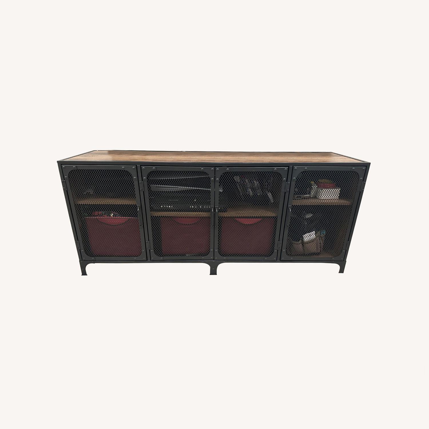 Seller's Notes:I love this tv stand, it has a lot of room for storage and the metal doors mostly hide the mess inside. I purchased this piece in February 2022, but I am now moving out of state and do not have room for it.