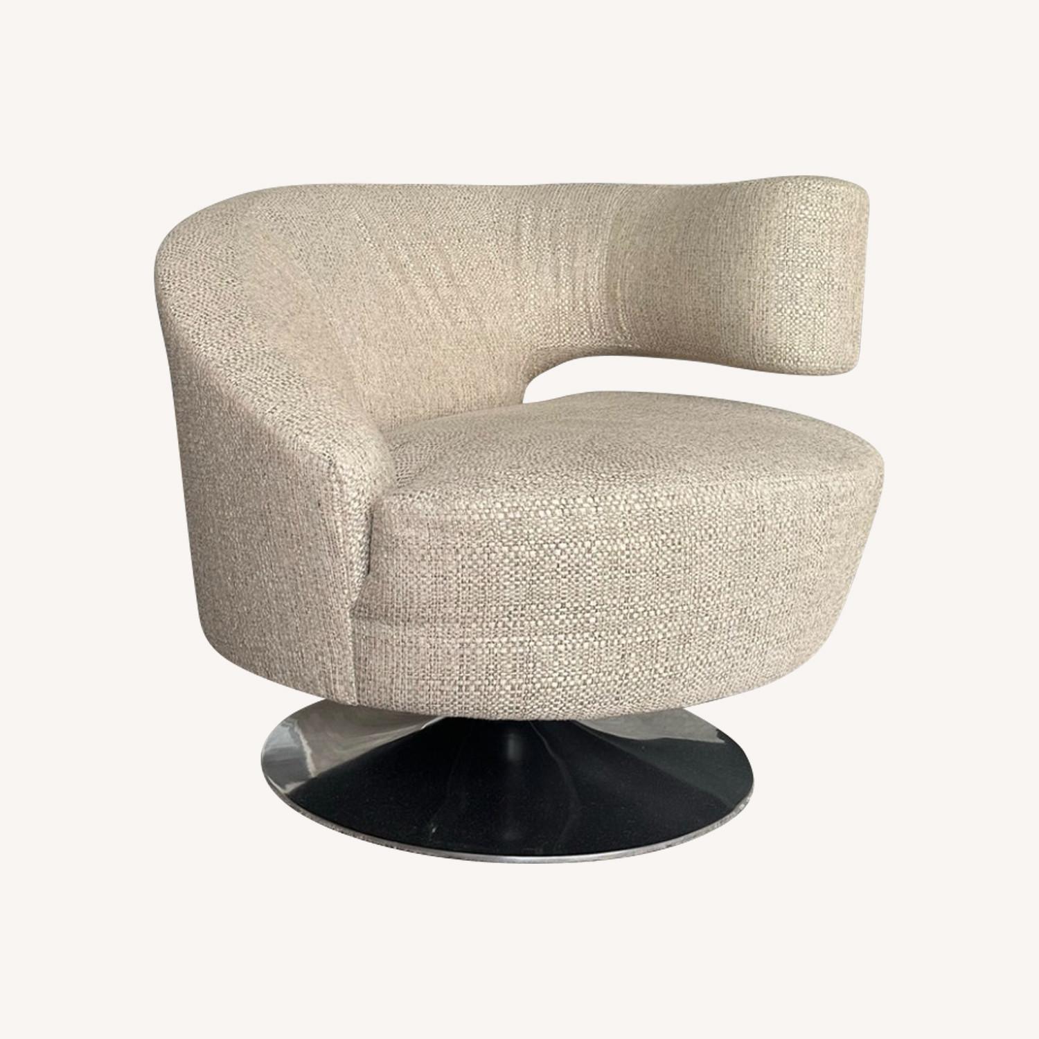 Natural Linen and Chrome Swivel Accent Chair