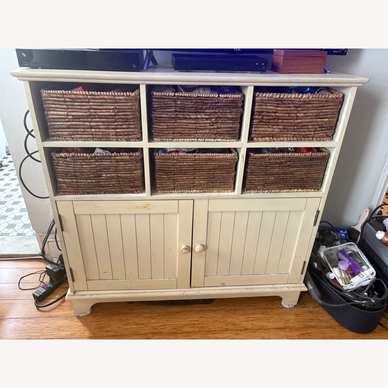 Seller's Notes:Please see photos for blemishes! Wicker baskets not included. Thank you for interest!