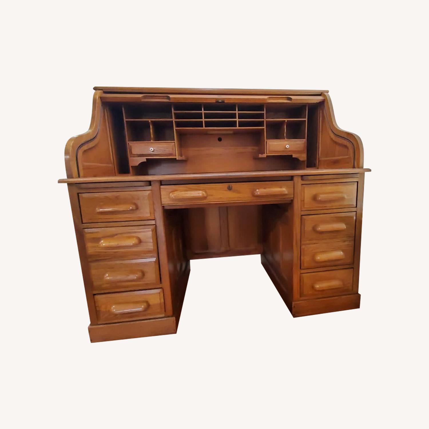 Wear and tear details: The roll top desk is antique, very well maintained, solid oak, more than 15 years old, looks like new