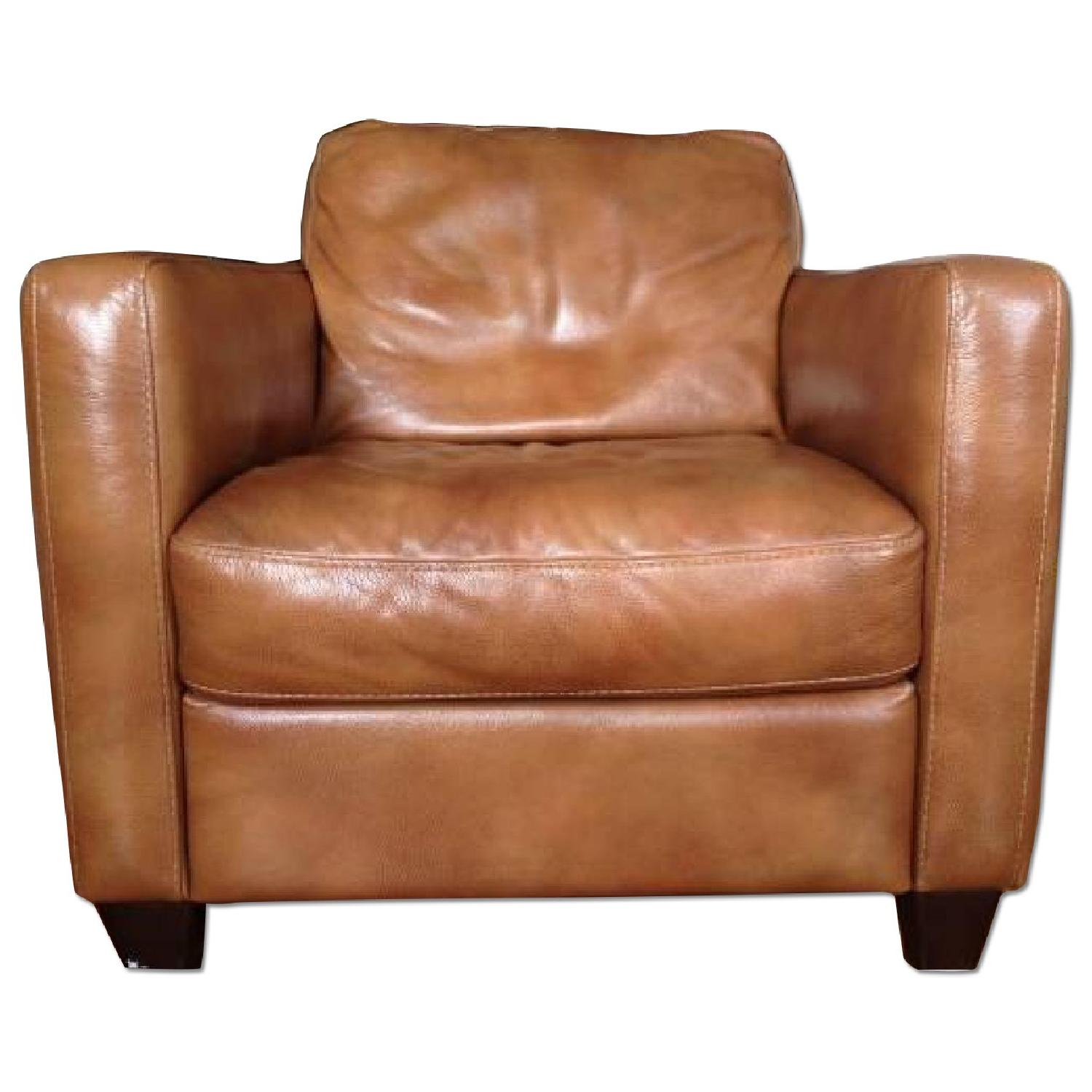 Seller's Notes:Natuzzi Editions, super comfortable large brown leather arm chair in excellent condition. We're only getting rid of it because it no longer fits with the decor in our home. W35" D37" H34"